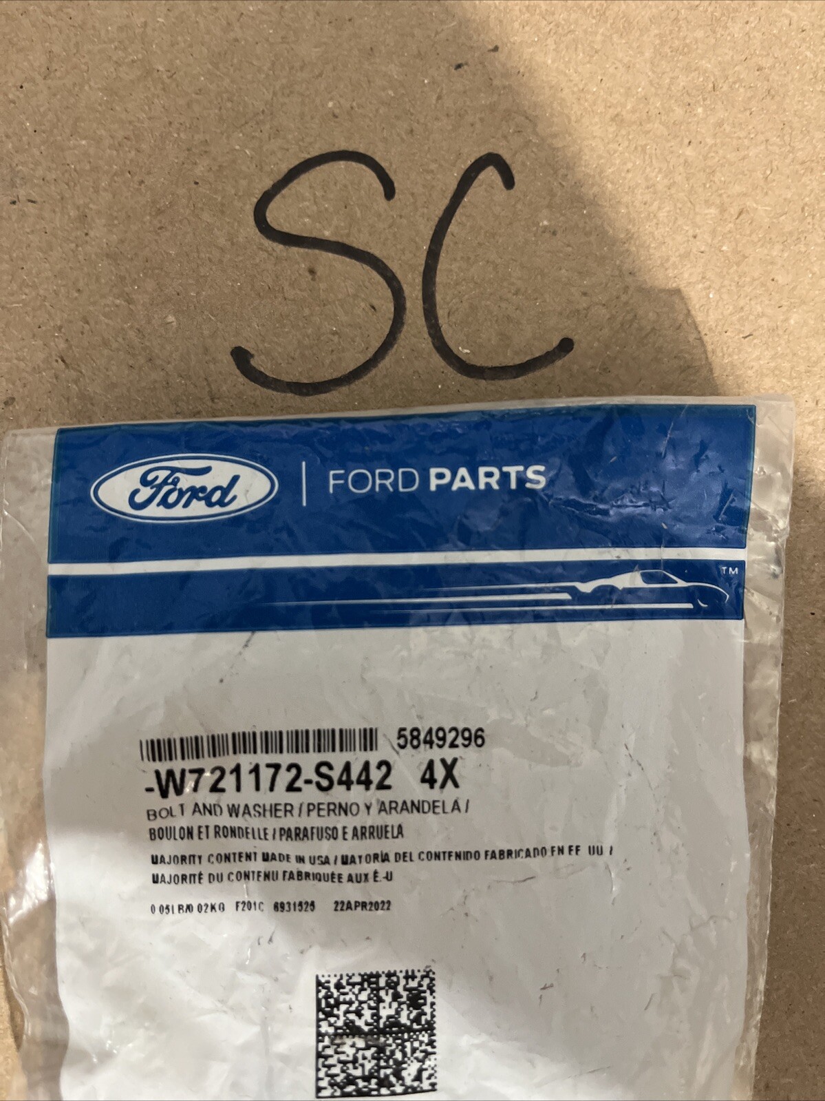 Genuine Ford OE Bolt And Washer Asy – Hex.Head – QTY4-W721172-S442