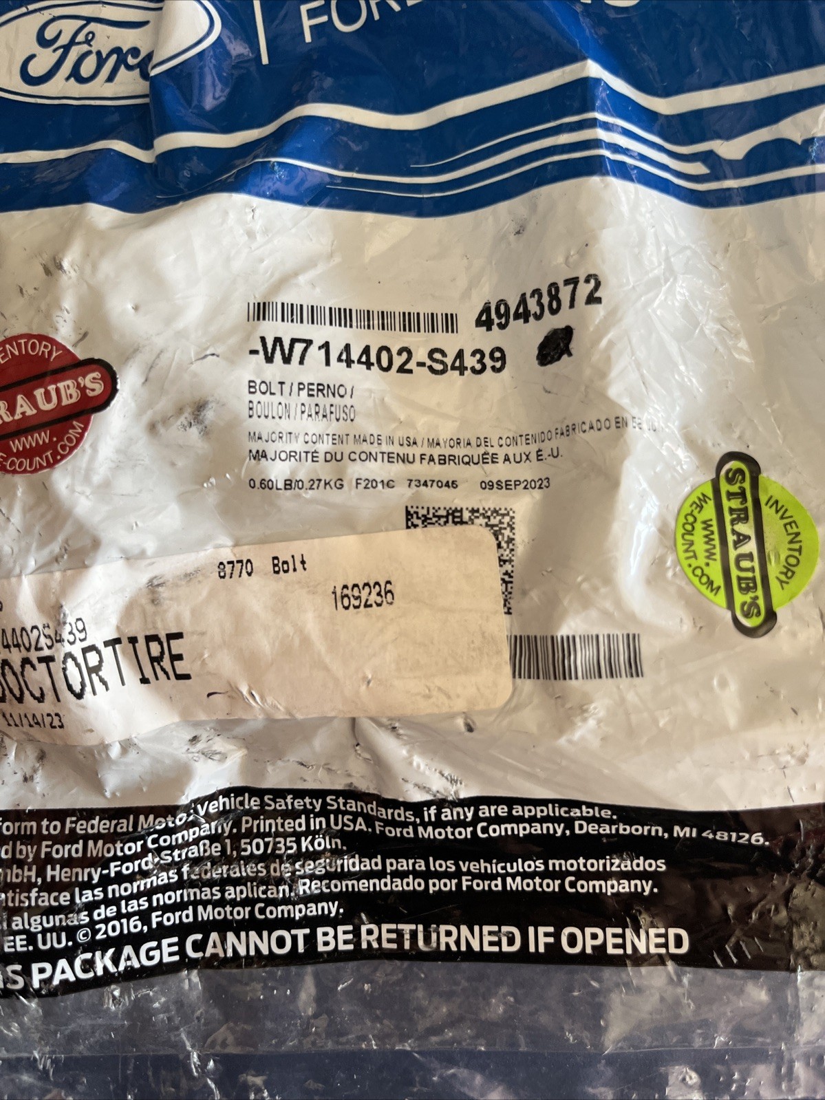 Genuine Ford OE Bolt W714402-S439