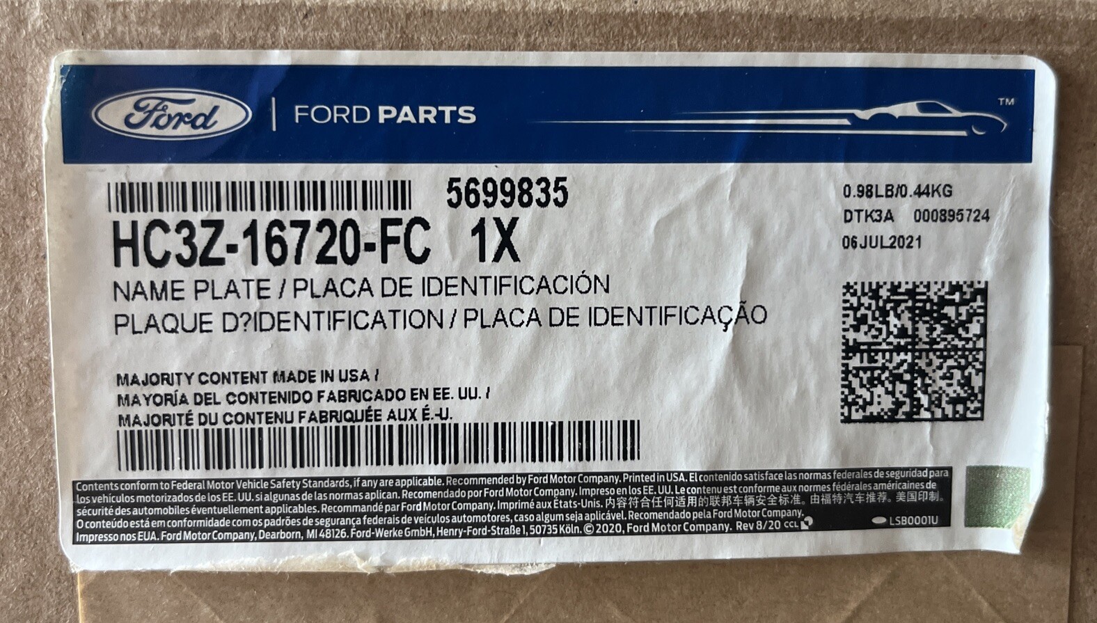 Genuine Ford OE Name Plate HC3Z-16720-FC