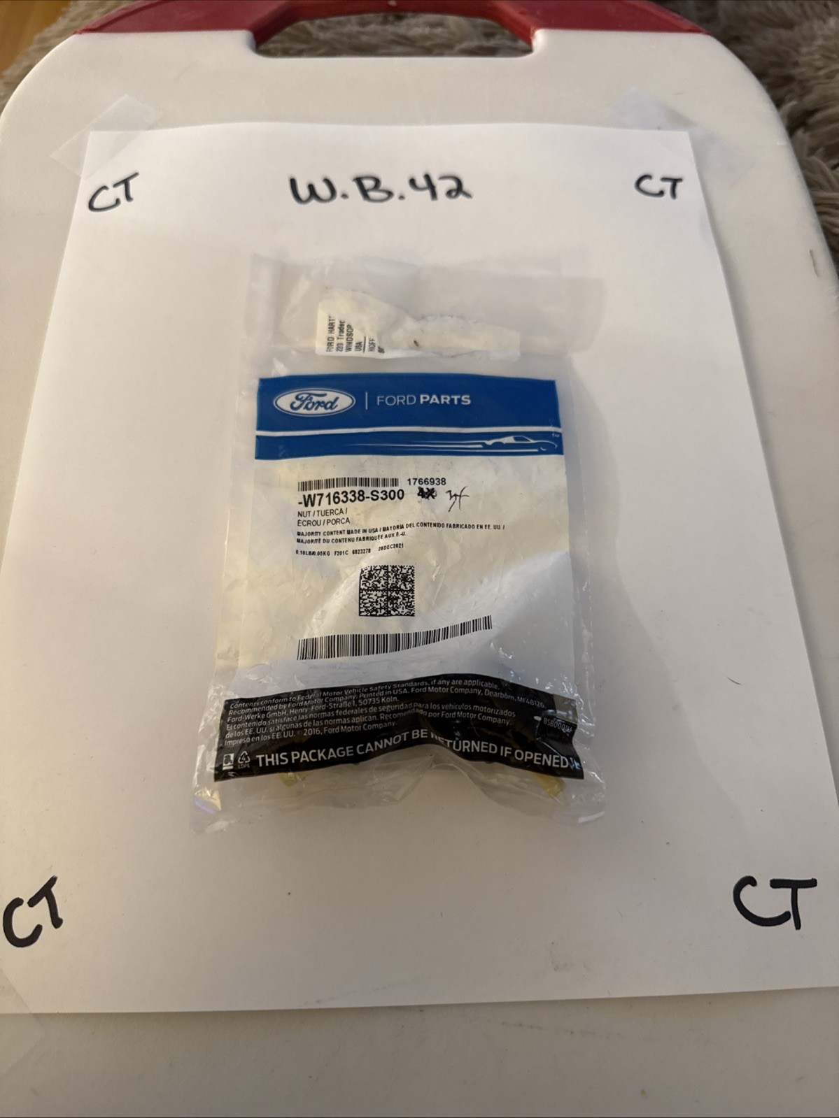 This is a genuine Ford OE Nut with the part number W716338-S300. It is a direct replacement for the OEM part number W716338S300. The nut is included in the items included section. It is a genuine OEM product.