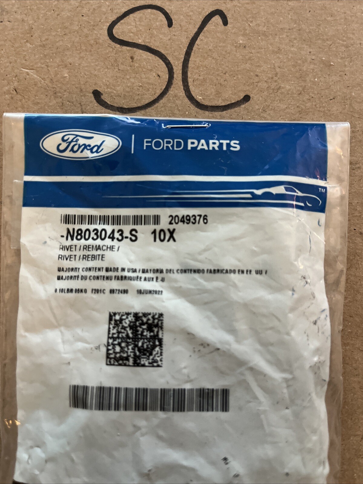 Genuine Ford OE Rivets N803043S- Pack Of 10