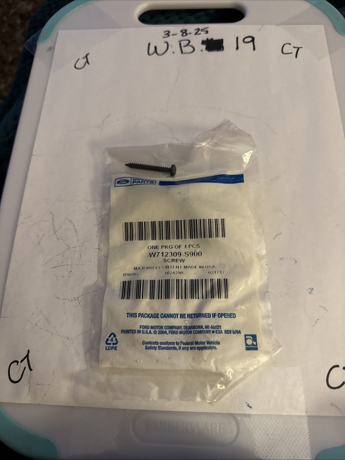 The product is a Genuine Ford OE Screw with the part number W712309-S900. It is a pan head, self-tapping screw that is a direct replacement for certain Ford vehicles. The screw is a genuine OEM part with a lifetime warranty, ensuring its quality and compatibility with the vehicle. This product is designed to be a high-quality replacement part for exterior components on Ford vehicles, meeting the standards set by the original manufacturer.