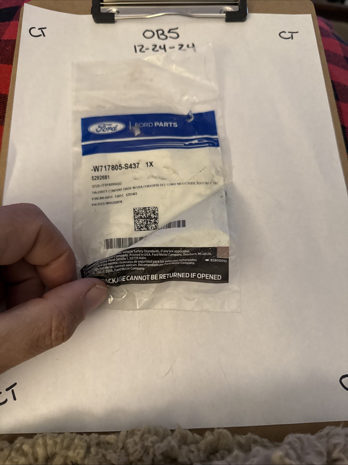 The product is a Genuine Ford OE Stud with the manufacturer part number W717805-S437. It is a direct replacement part designed by Ford, making it a genuine OEM component. This stud is specifically made for Ford vehicles and is of high quality, ensuring a proper fit and performance. It is a reliable choice for those seeking an authentic replacement part for their vehicle.