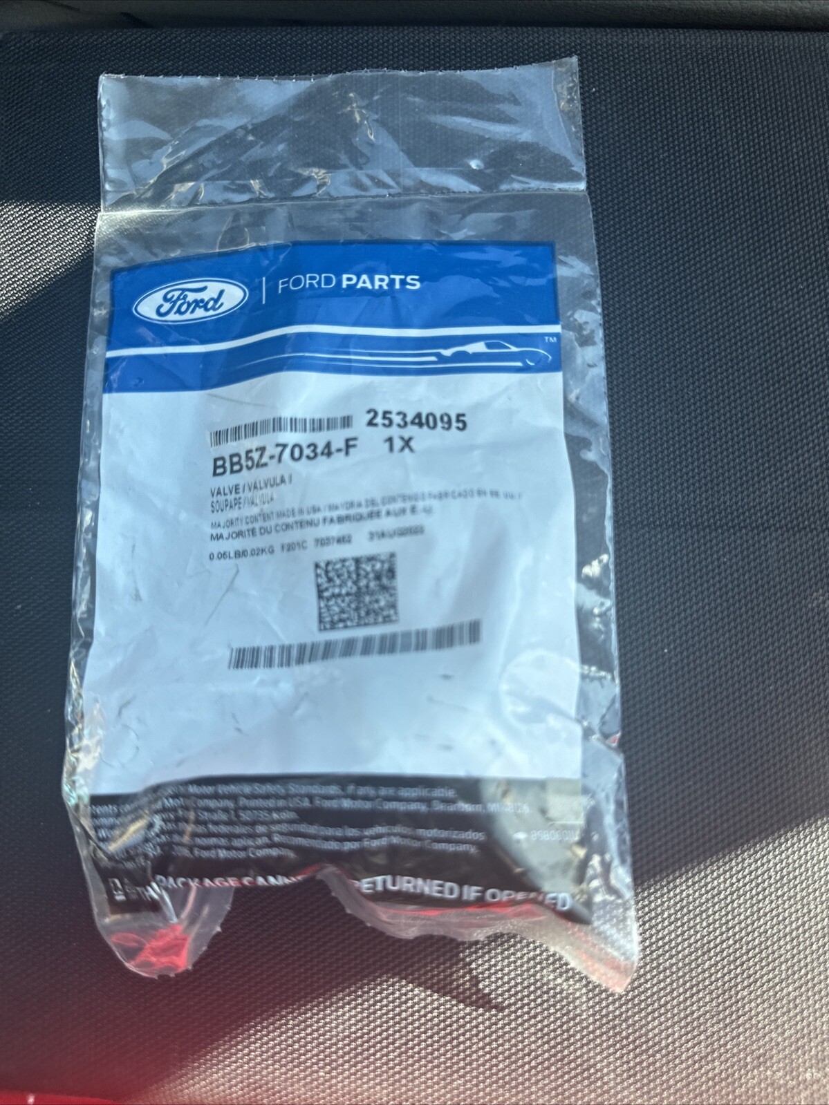 The part number for this valve assembly is BB5Z7034F, and it is a genuine OEM part number. This means that it is made by the original equipment manufacturer, ensuring the highest quality and compatibility. In summary, this valve assembly is a great choice for anyone looking to replace a damaged or worn-out valve on their vehicle.