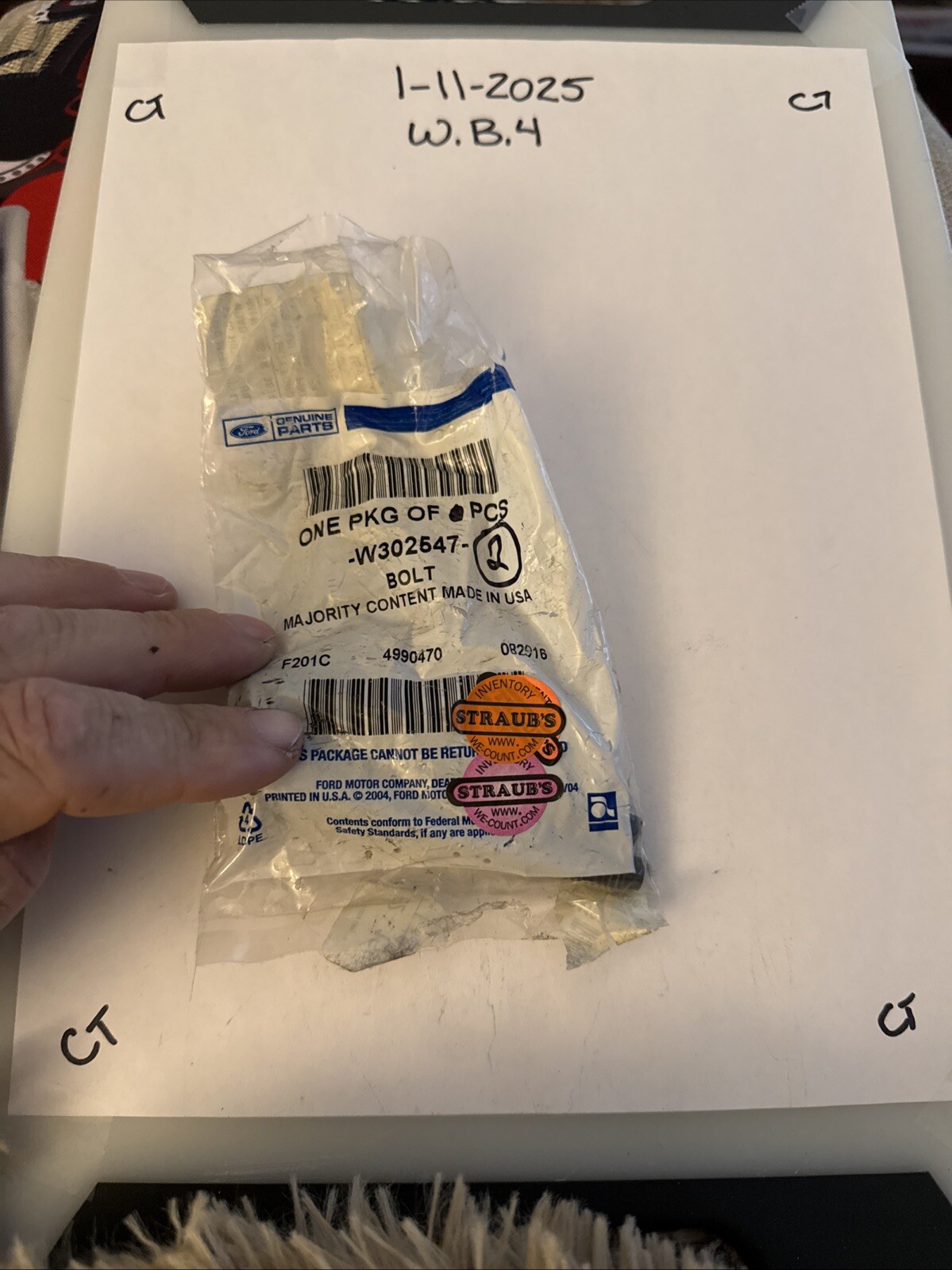 The product is a Genuine Ford OEM Bolt with part number W302547, designed as a direct replacement for a specific vehicle model. Made of steel in the United States, this set includes 2 bolts and is intended for placement on the front of the vehicle. The manufacturer part number is -W302547, indicating its authenticity as a Ford OEM part. This bolt is a crucial component for securing various exterior parts and accessories on the vehicle, ensuring proper installation and functionality.