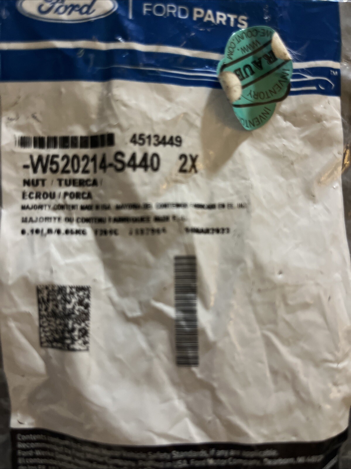 Genuine Ford OEM W520214-S440 Stabilizer Link Nuts Package Of 2