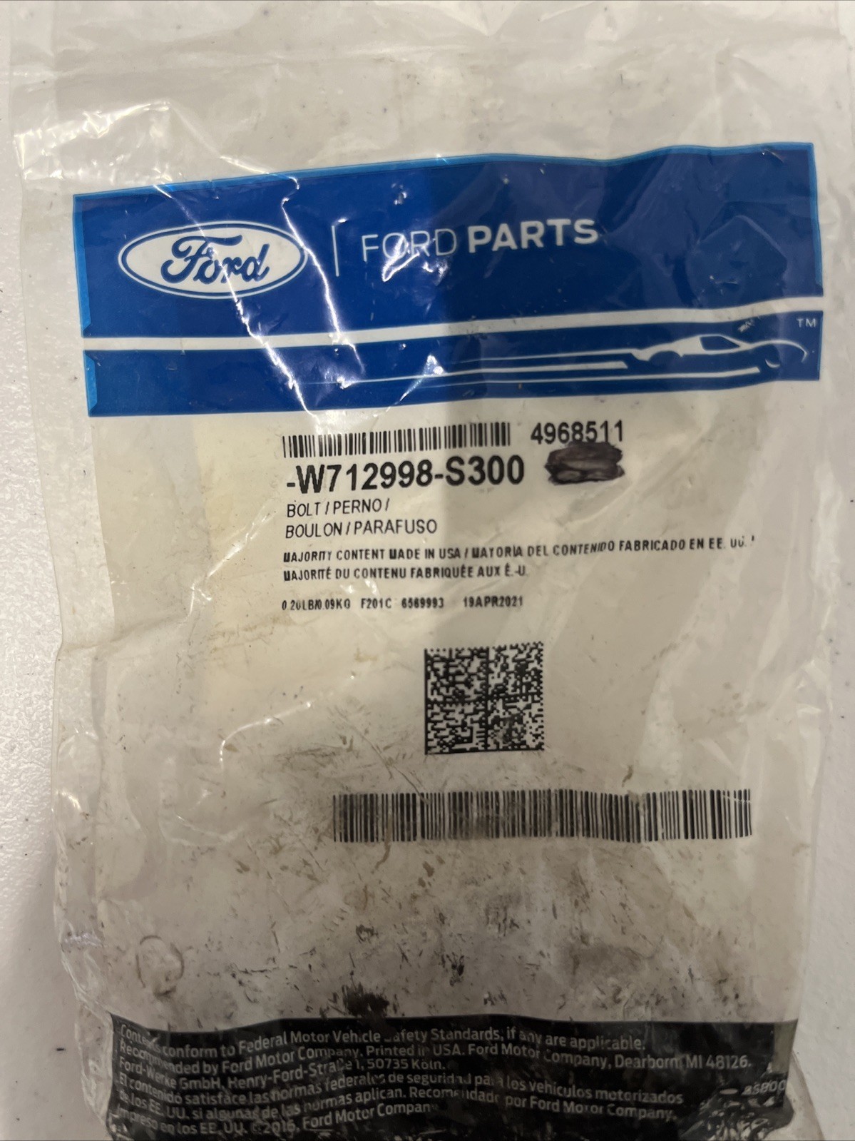 Genuine Ford OEM W712998-S300 Bolt (One Bolt)