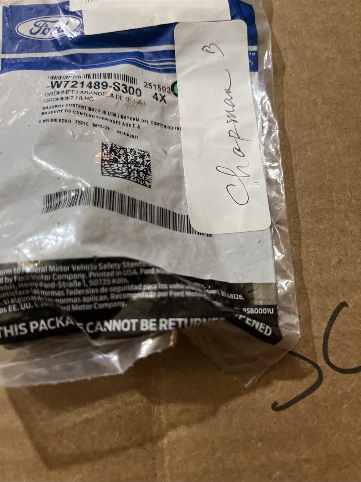 Genuine Ford OEM W721489-S300 GROMMET 2021-2024 Sold Individually