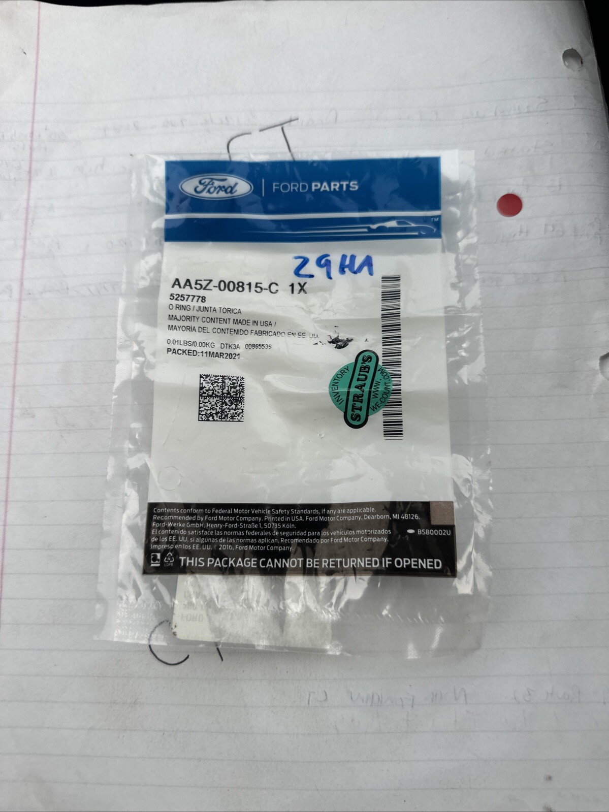 This Genuine Ford Oil Pipe O-Ring AA5Z-00815-C is a high-quality replacement part for your Ford or Lincoln vehicle. It is designed to fit directly into your engine, ensuring maximum performance and reliability.