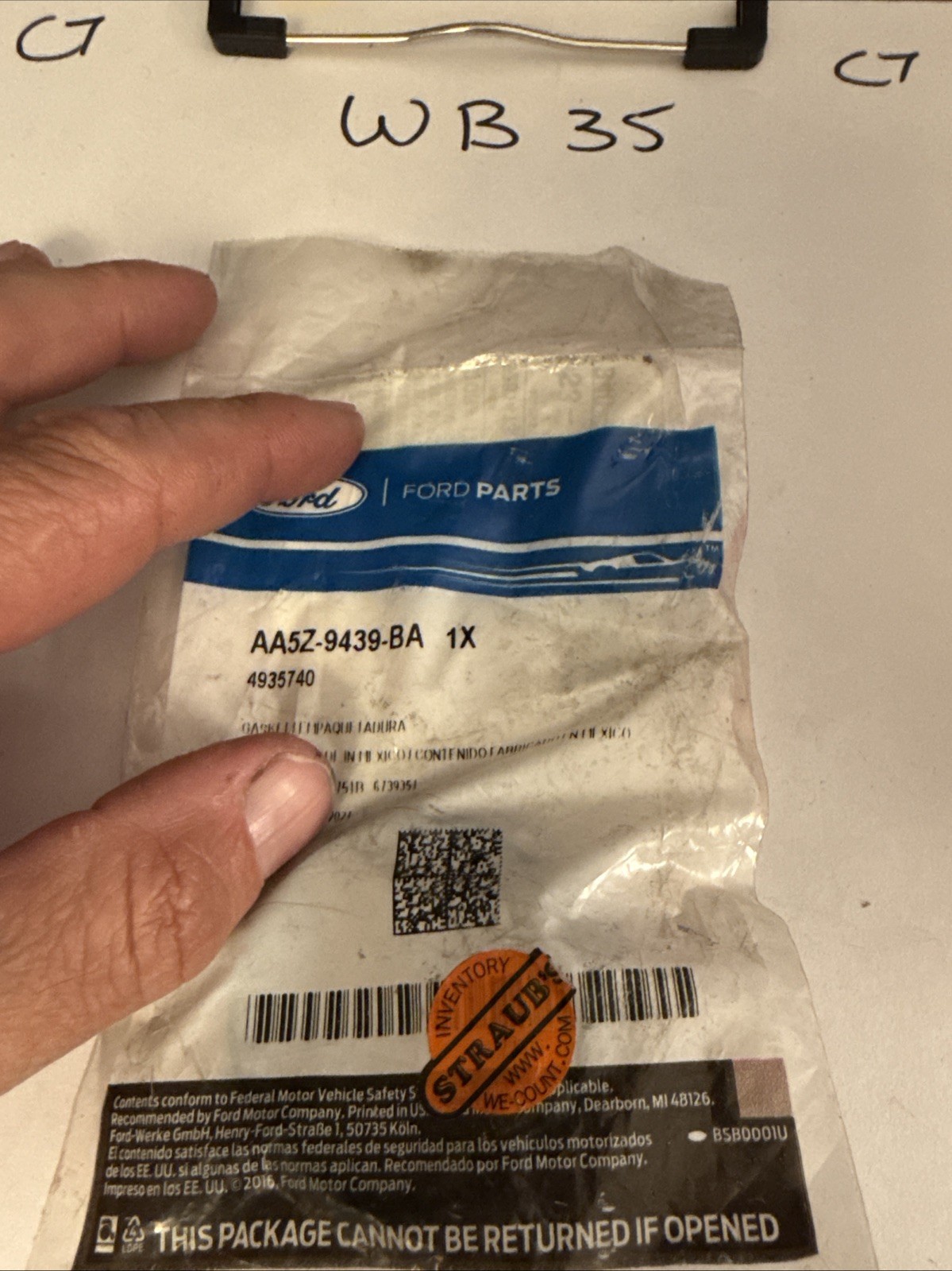 The manufacturer part number for this gasket is also AA5Z-9439-BA. It is an essential component for maintaining the integrity of your engine's intake system. This gasket is ideal for those looking for a replacement part for their Ford vehicle's intake manifold.