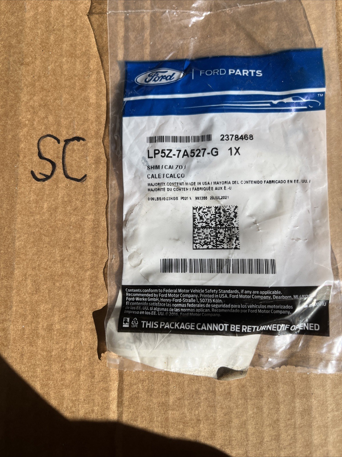 Genuine Ford Plate Shim LP5Z-7A527-G NOS