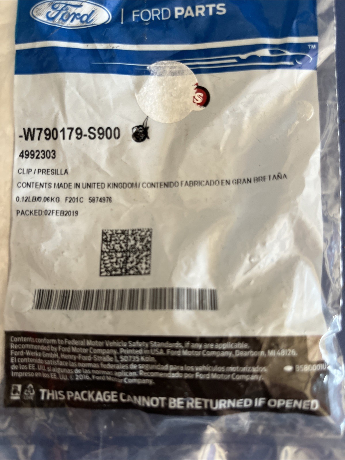 | Product Name | Genuine Ford Radiator Support Splash Shield Clip W790179-S900 |