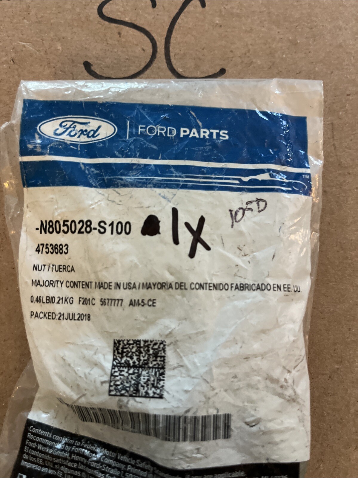 Genuine Ford Radius Arm Nut -N805028-S100. QTY1
