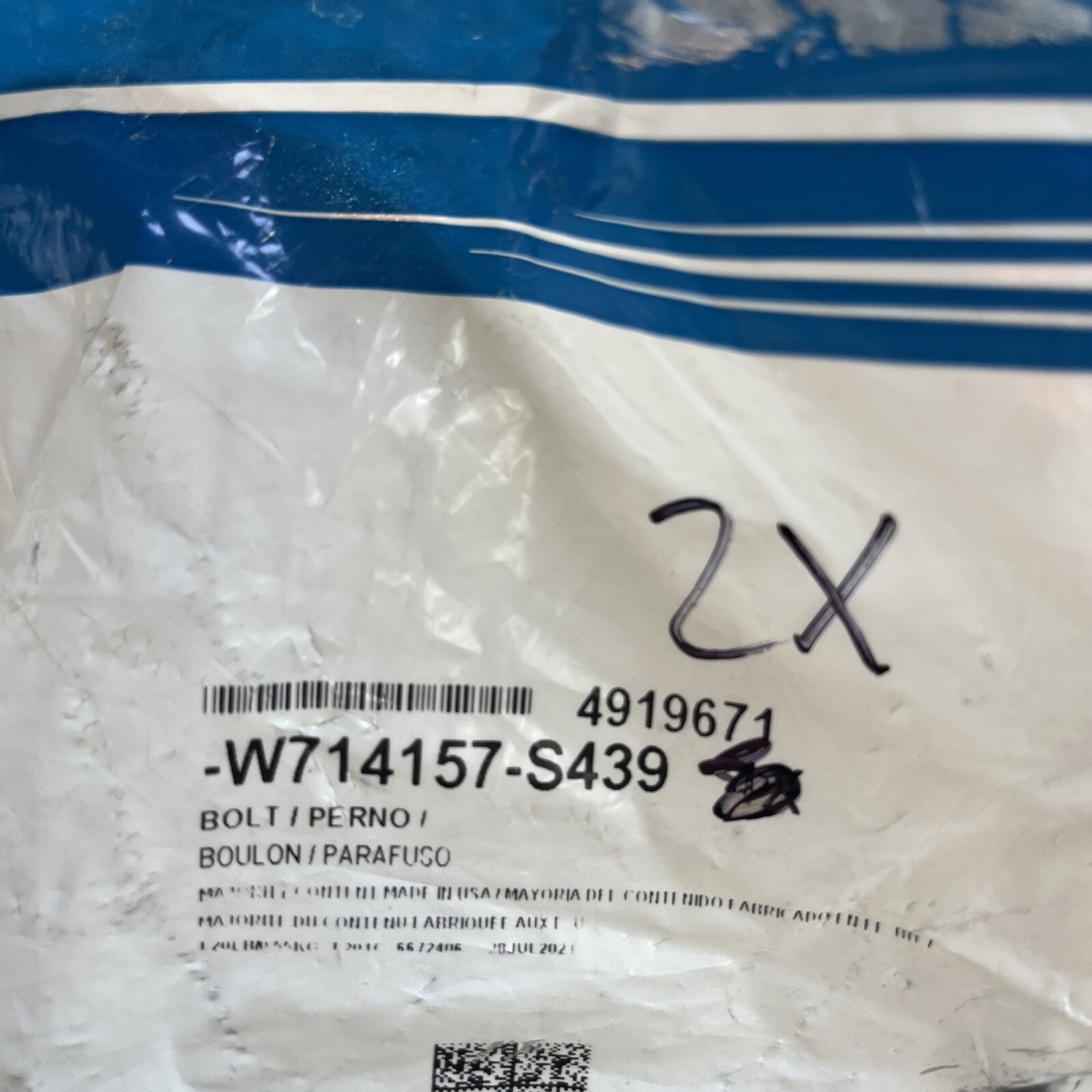 Genuine Ford Rear Insulator Rear Bolt -W714157-S439 2pk