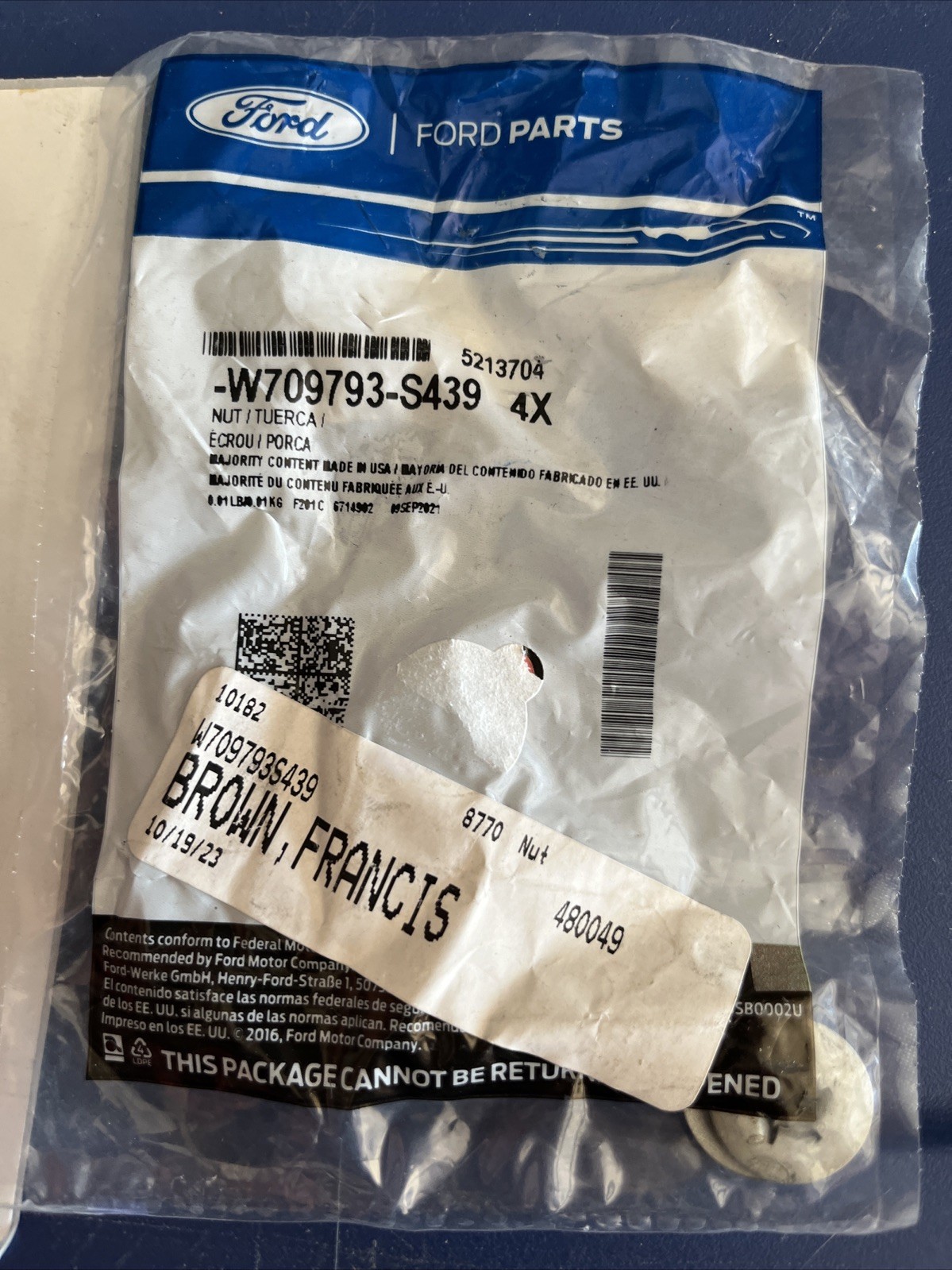 Genuine Ford Rear Shield U-Nut W709793-S439 4 U Nuts