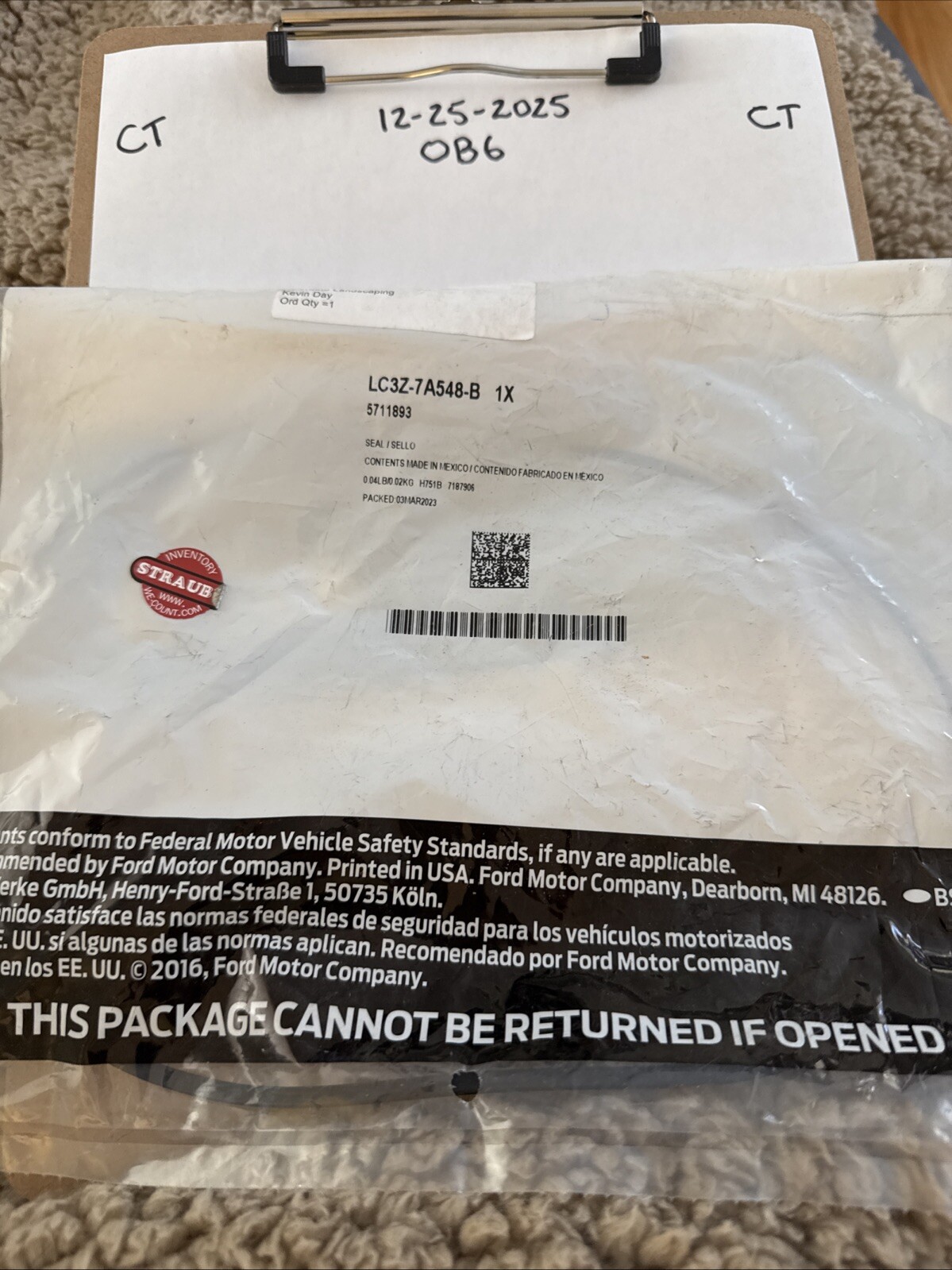 The product is a Genuine Ford Seal with the manufacturer part number LC3Z-7A548-B. It is a direct replacement part that is a genuine OEM product from Ford. The seal is designed specifically for Ford vehicles and is identified by the SKU LC3Z-7A548-B. This Genuine Ford Seal ensures a proper fit and high-quality performance, making it a reliable choice for maintaining the integrity of your vehicle's components.