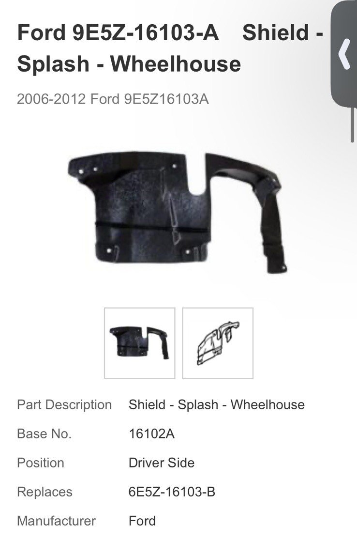 Genuine Ford Shield – Splash – Wheelhouse OEM 9E5Z16103A