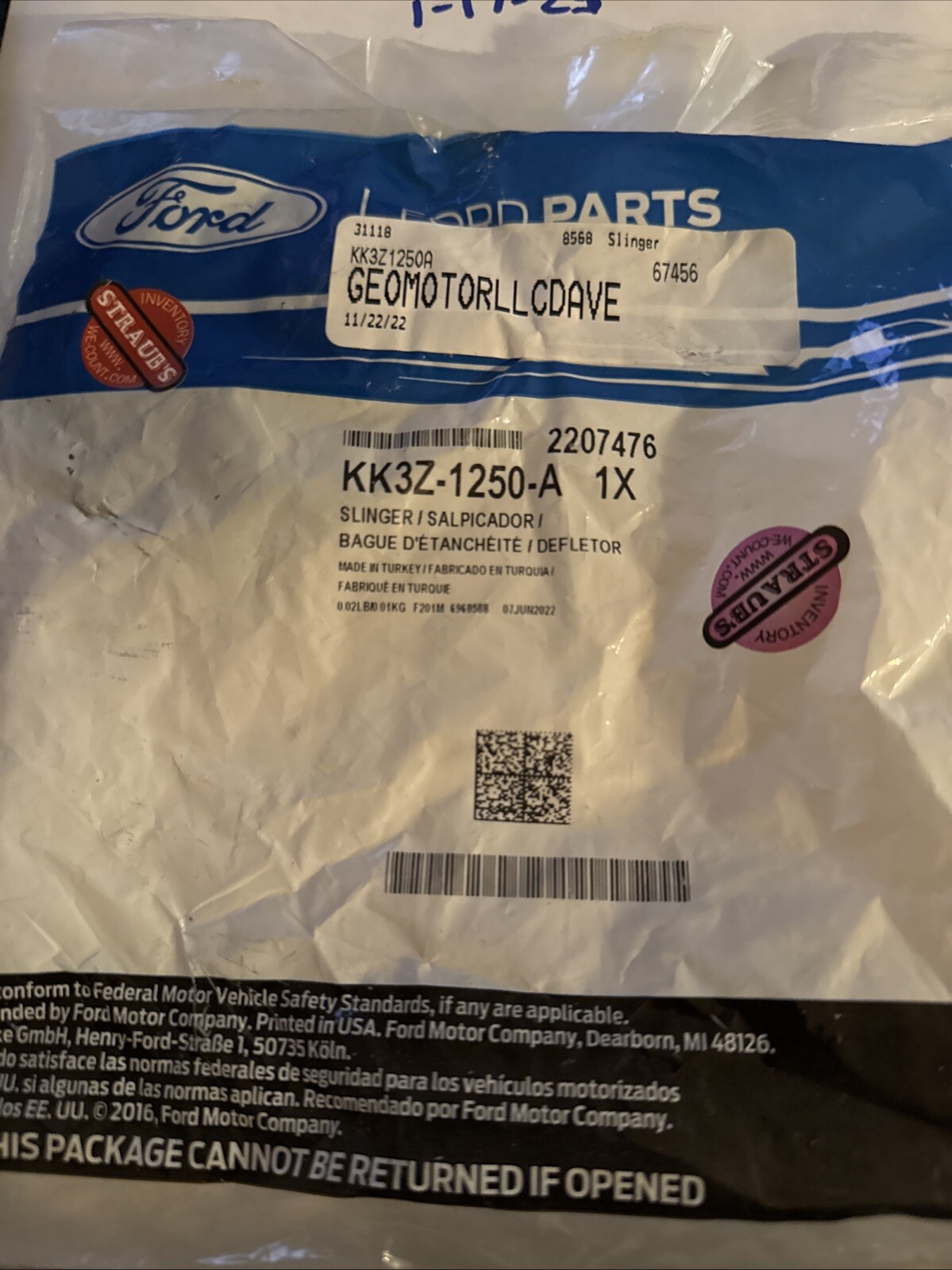 The product is the Genuine Ford Slinger KK3Z-1250-A, a direct replacement part manufactured by Ford. It is an OEM product, ensuring compatibility and quality for your vehicle. The manufacturer part number is KK3Z-1250-A, and the SKU is also provided for easy identification and ordering. This Ford slinger is designed to be a reliable component for your vehicle's transmission and drivetrain system, specifically for differentials, assemblies, and parts related to seals and gaskets.