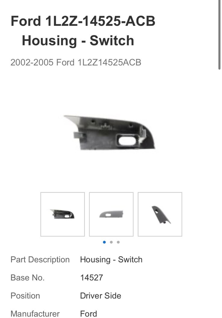 This Genuine Ford Switch Housing, part number 1L2Z-14525-ACB, is a perfect replacement for your vehicle's switch controls. The black color and left side placement make it a seamless fit for your car or truck.