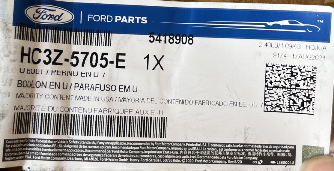 Please note that this listing only includes the U-Bolt with part number HC3Z-5705-E. It is important to verify that this part is compatible with your vehicle before making a purchase. Feel free to contact us with any questions or concerns.