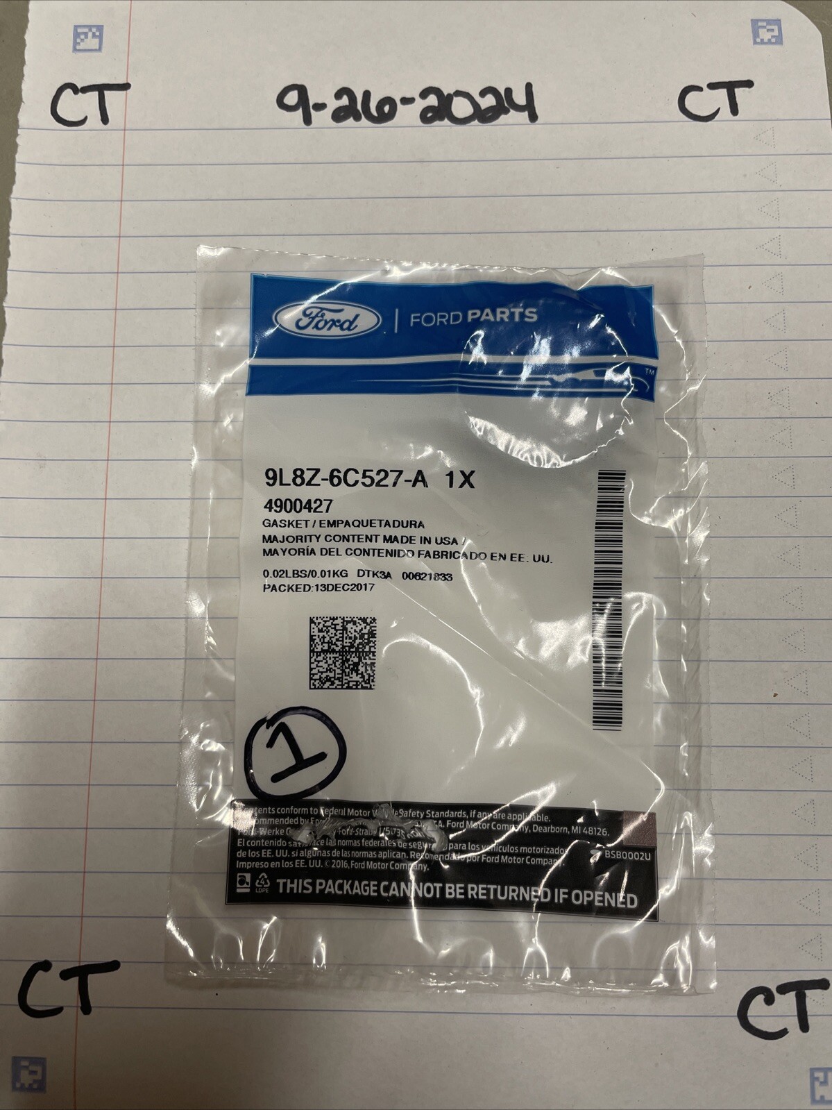 This package includes one black valve cover seal with the manufacturer part number 9L8Z-6C527-A. It is a non-domestic product and is produced in the United States. This gasket is designed to fit spark plug apertures and is a perfect fit for your vehicle. Buy now and replace your old or damaged valve cover seal with this genuine Ford part.