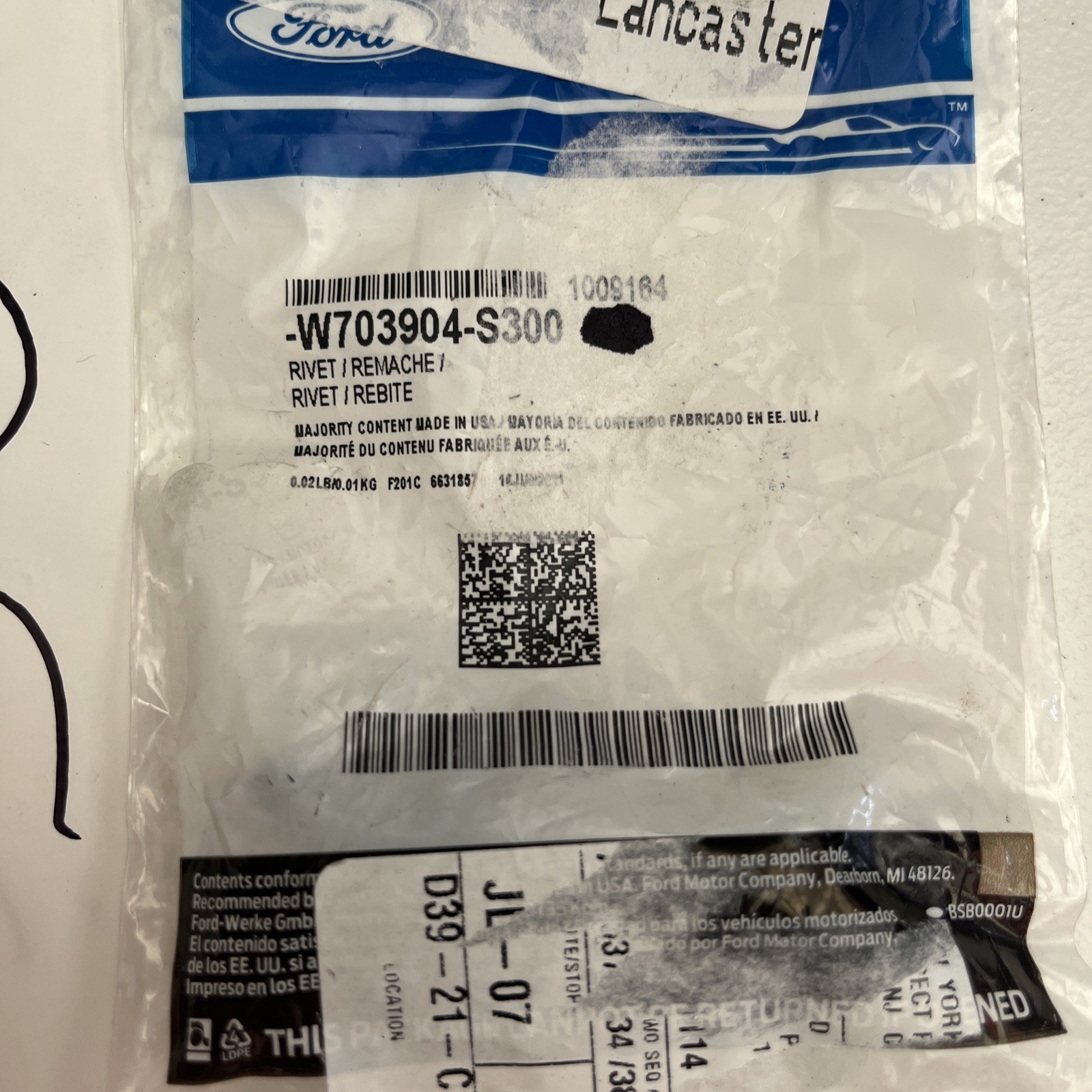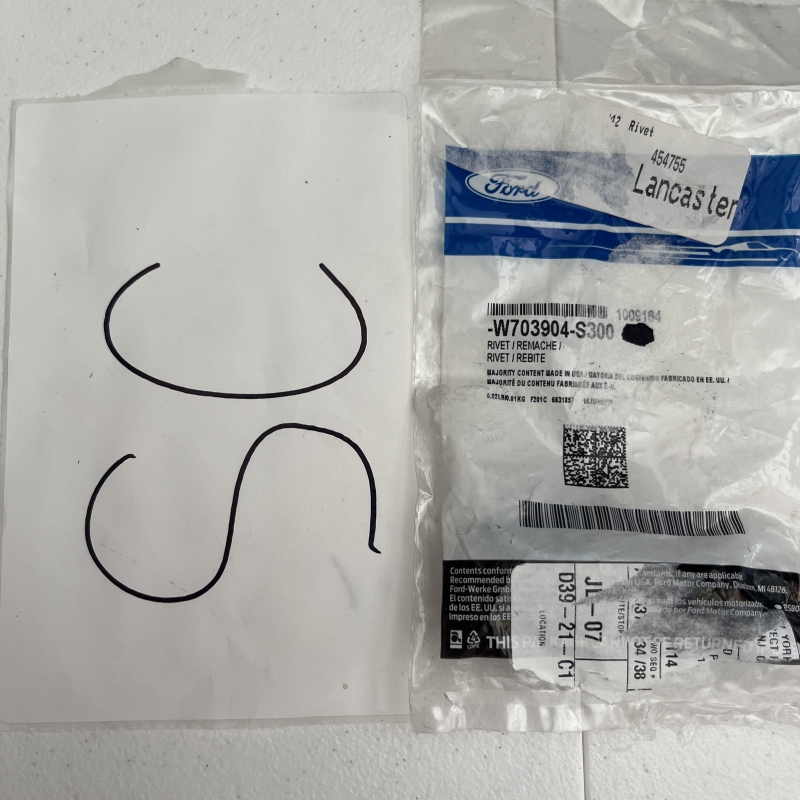 genuine Ford W703904-S300 Reinforced Bracket Rivet OEM 5422