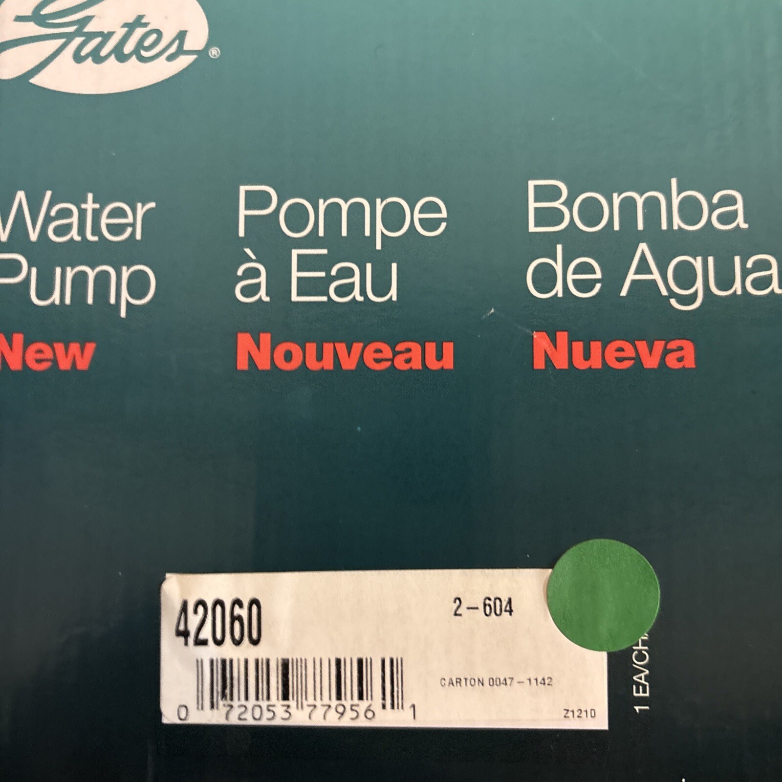Genuine Gates Engine Water Pump (Standard) 42060 NOS (part may have blush rust, patina, etc due to age )