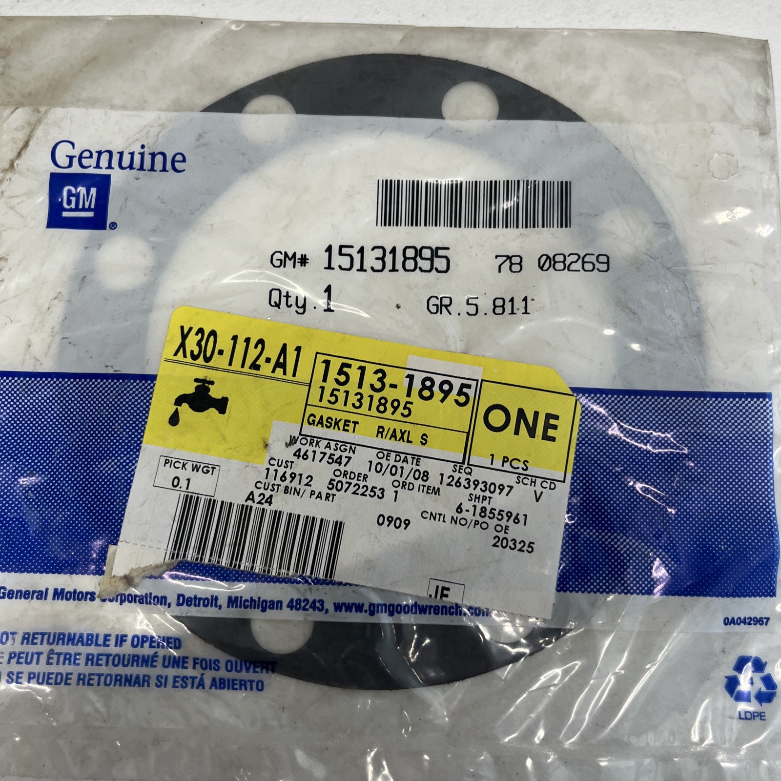 Genuine GM 15131895 Rear Axle Shaft Gasket For 98-99 Chevrolet P30