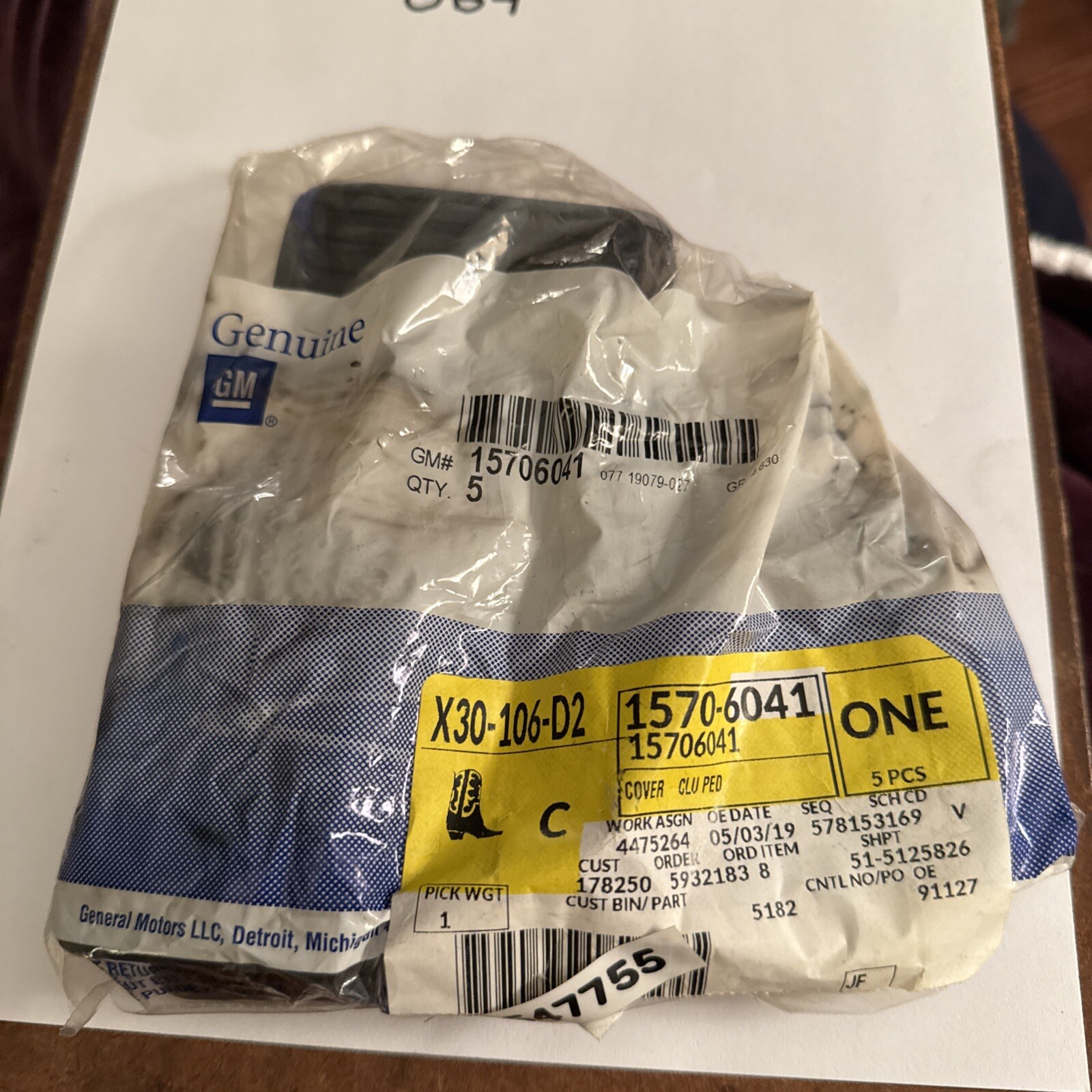 The Genuine GM 15706041 Cover is designed for a pedal within a vehicle. It is a single cover intended to fit securely onto the designated pedal for protection and aesthetic purposes. The manufacturer part number 15706041 ensures compatibility with specific GM vehicles, guaranteeing a proper and secure fit. This product is an authentic GM part, providing assurance of quality and reliability for your vehicle's pedal cover needs.