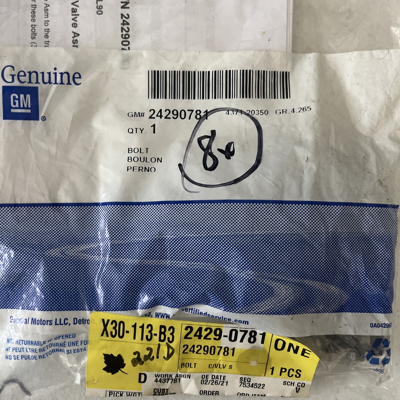 Genuine GM Bolts-QTY 8 24290781