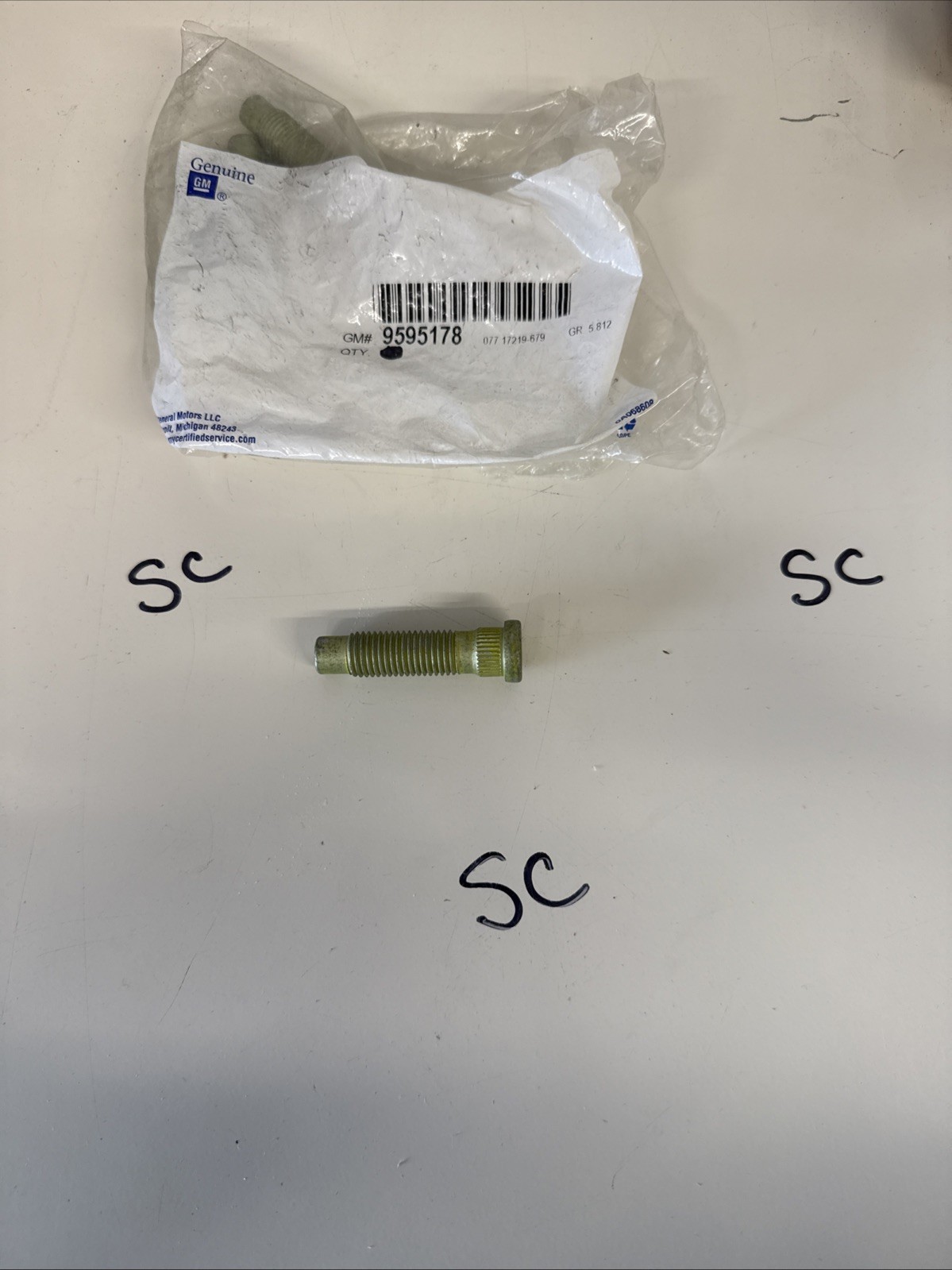 This is a genuine GM brake rear wheel stud, with part number 9595178. It is a direct replacement for the original stud, and is made for use on the rear suspension of certain GM vehicles. This stud is a single pack, and is a new OEM product, with no manufacturer warranty. It is specifically designed for use on one wheel.