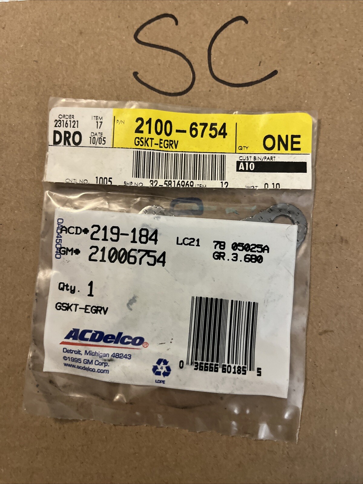 Genuine GM OEM 21006754 EGR Valve Cover Gasket ACDELCO 219-184 Factory 1990-2002