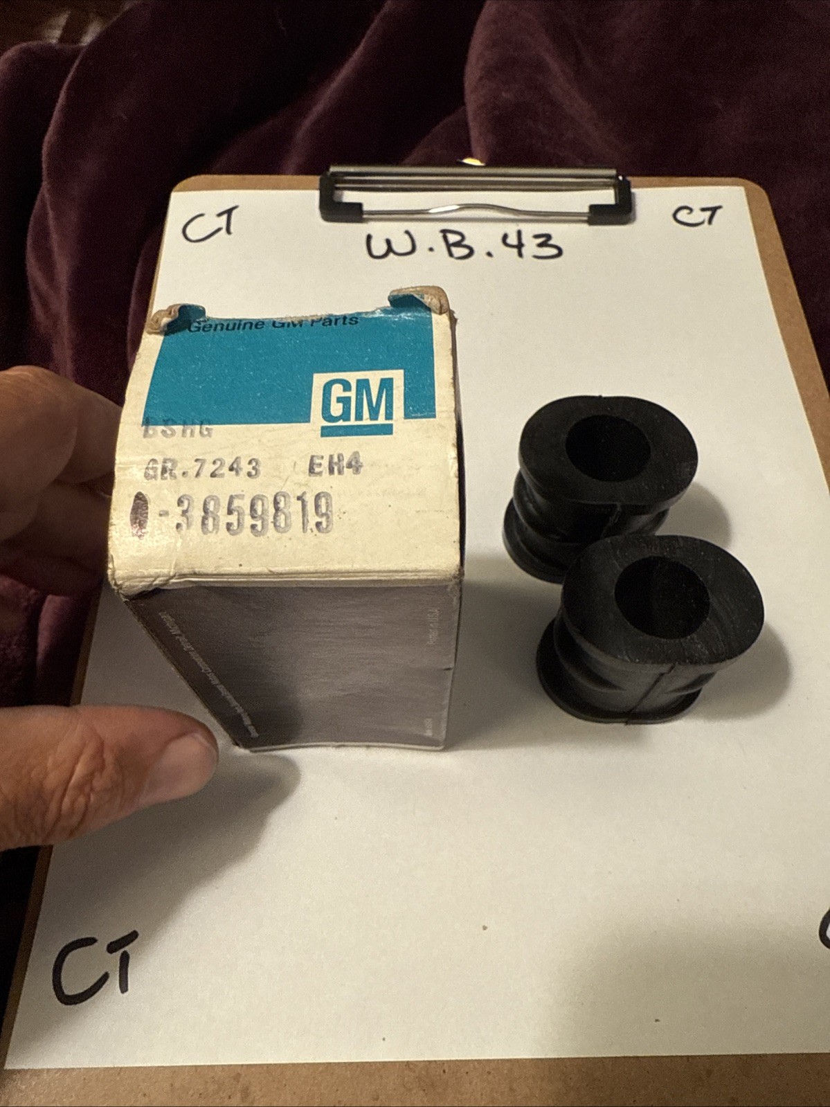Upgrade your 1964-1969 Corvair's handling with this genuine GM pair of NOS stabilizer bar end bushings. These bushings, part number 3859819, are designed for a direct replacement fit on the front suspension of your vehicle, ensuring a precise fit and easy installation. Made for Corvairs, these bushings are an essential upgrade for those looking to maintain or improve their vehicle's performance.