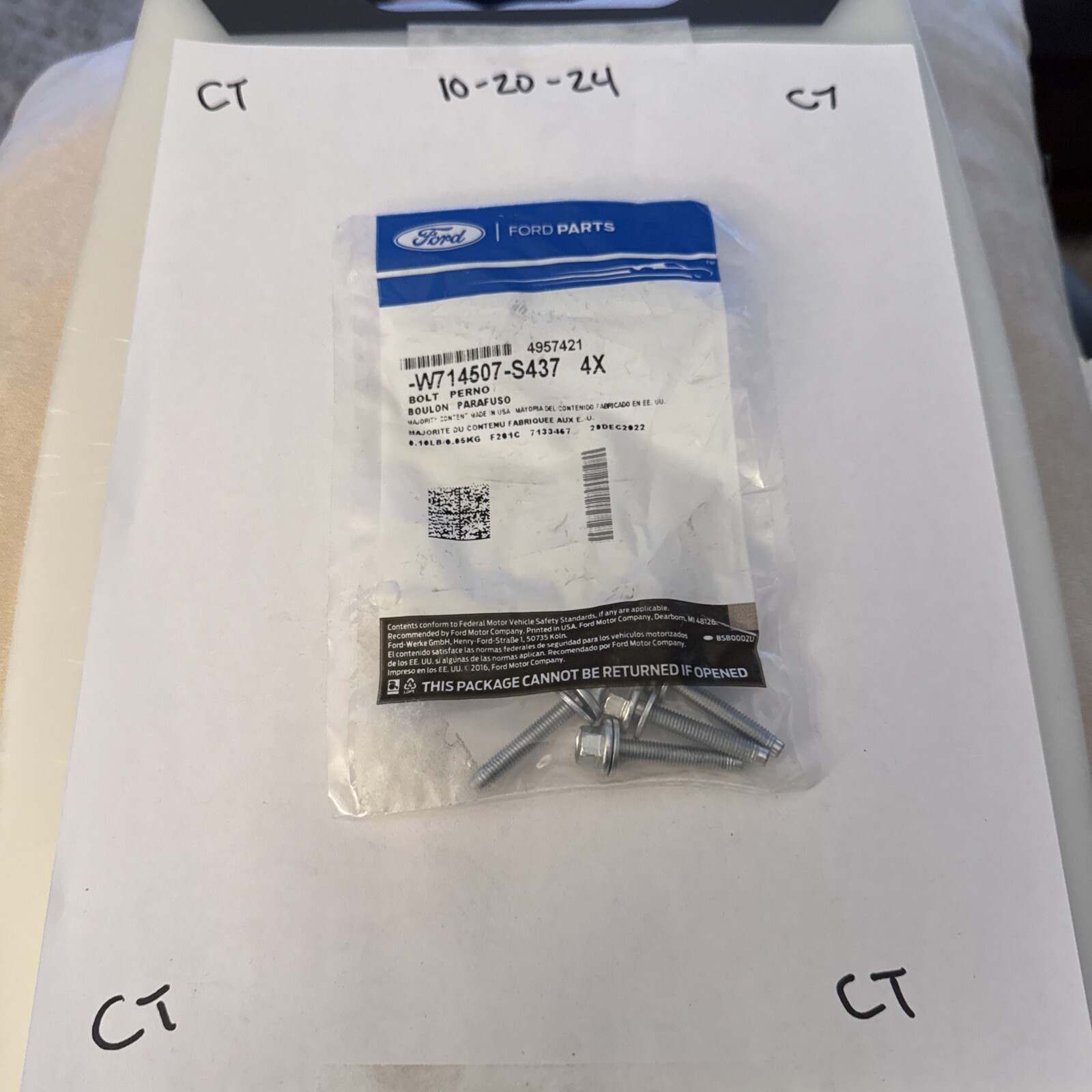 This is a genuine ignition coil bolt with a quantity of 4, part reference number W714507-S437. It is compatible with Ford, Lincoln, and Mercury vehicles and is a direct replacement for the ignition system. The product is an OEM part and comes with a manufacturer part number of -W714507-S437.
