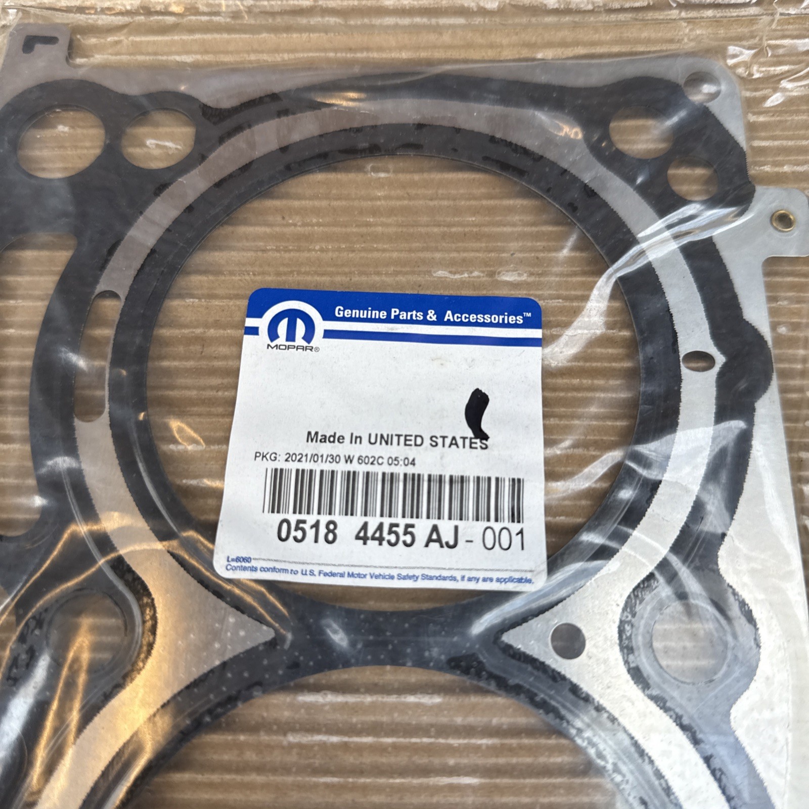 This is a genuine Mopar engine cylinder head gasket with the part number 05184455AJ. It is an OEM product, and it is brand new. The gasket is designed to fit properly and ensure that your engine runs smoothly. It is made of high-quality materials to withstand the heat and pressure of your engine. This product is perfect for those who want to maintain their car's performance and ensure that it runs efficiently.