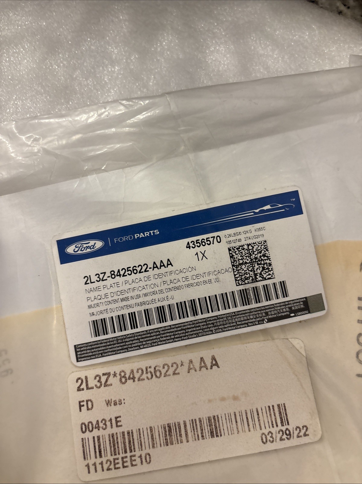 | Manufacturer Part Number | 2L3Z8425622AAA |