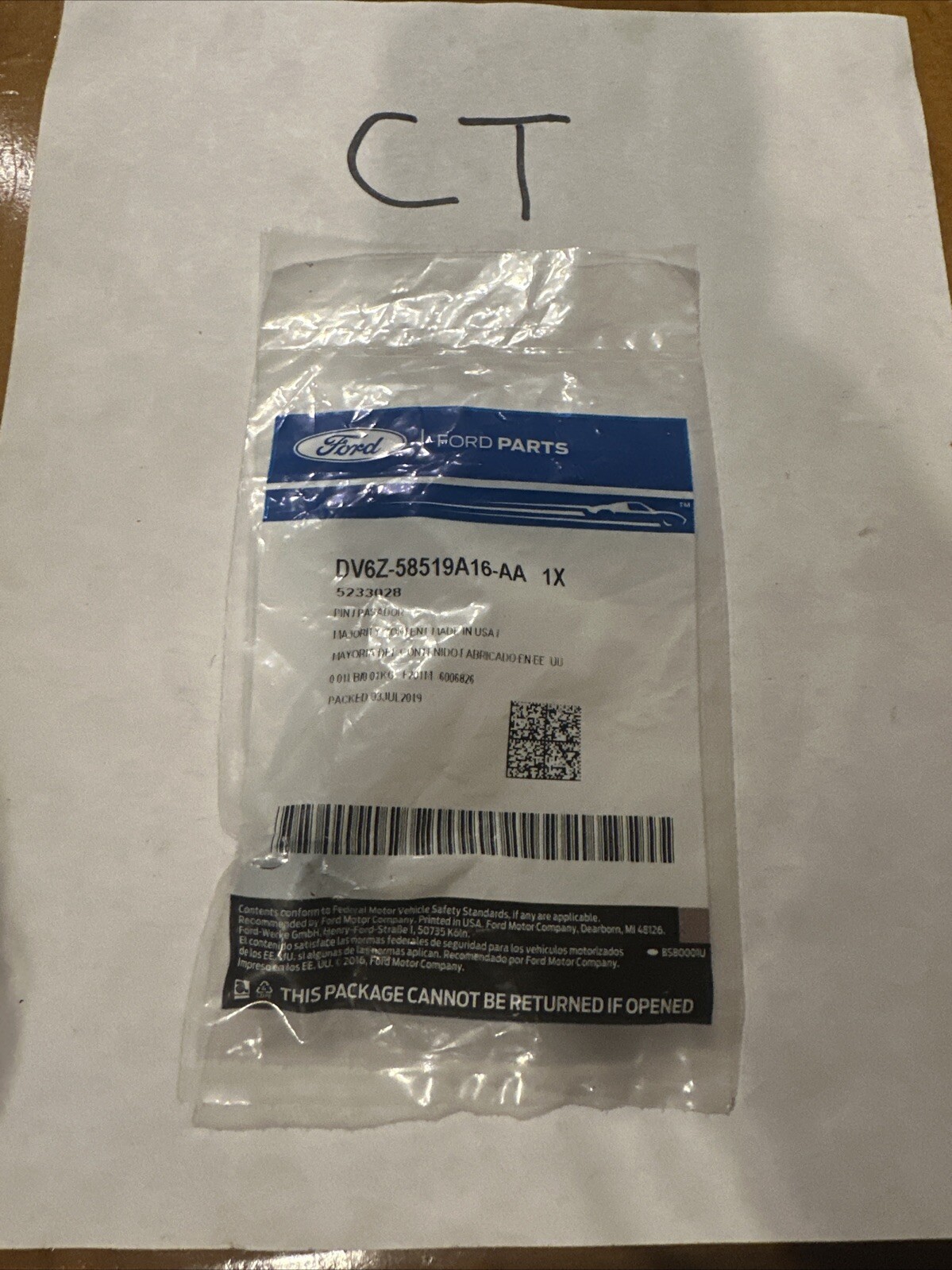 This is a genuine OEM Ford retaining pin with the part number DV6Z58519A16AA. It is compatible with various Ford vehicles and is made to ensure high-quality performance and durability. The brand of this part is Ford and it is an essential component for the proper functioning of your vehicle.