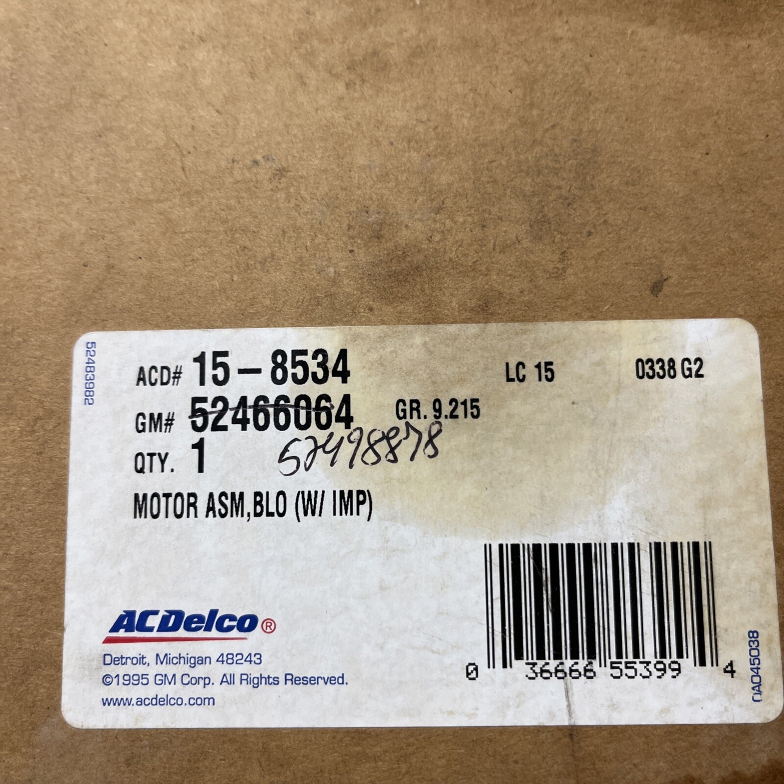 Genuine OEM GM HVAC Blower Motor ACDelco 15-8377 / GM 52466064 NOS