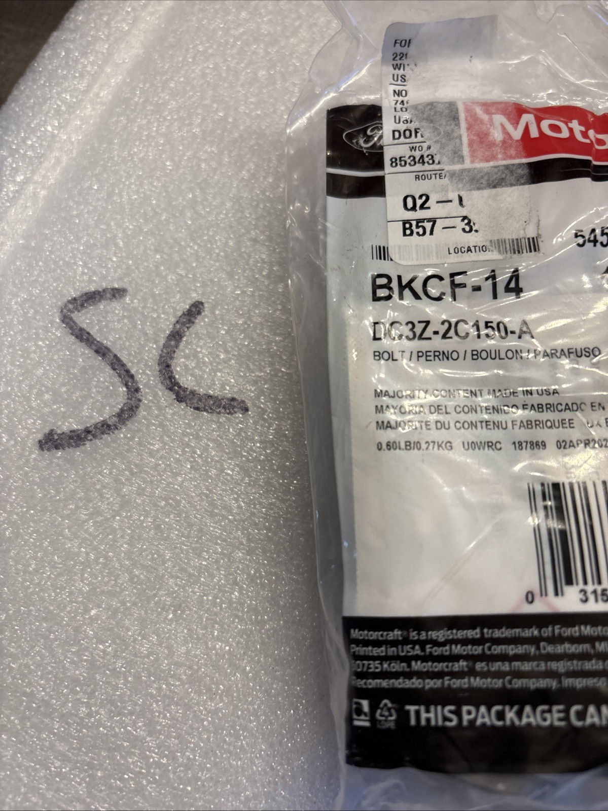 Genuine OEM Motorcraft Ford Caliper Pin BKCF-14 / DC3Z-2C150-A