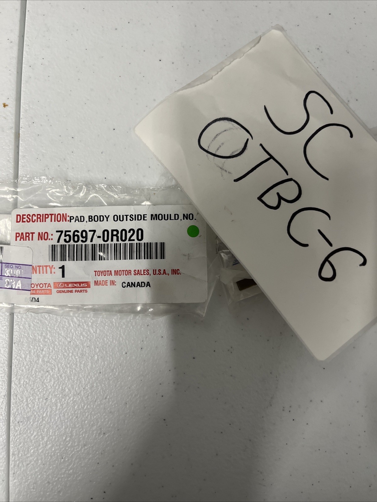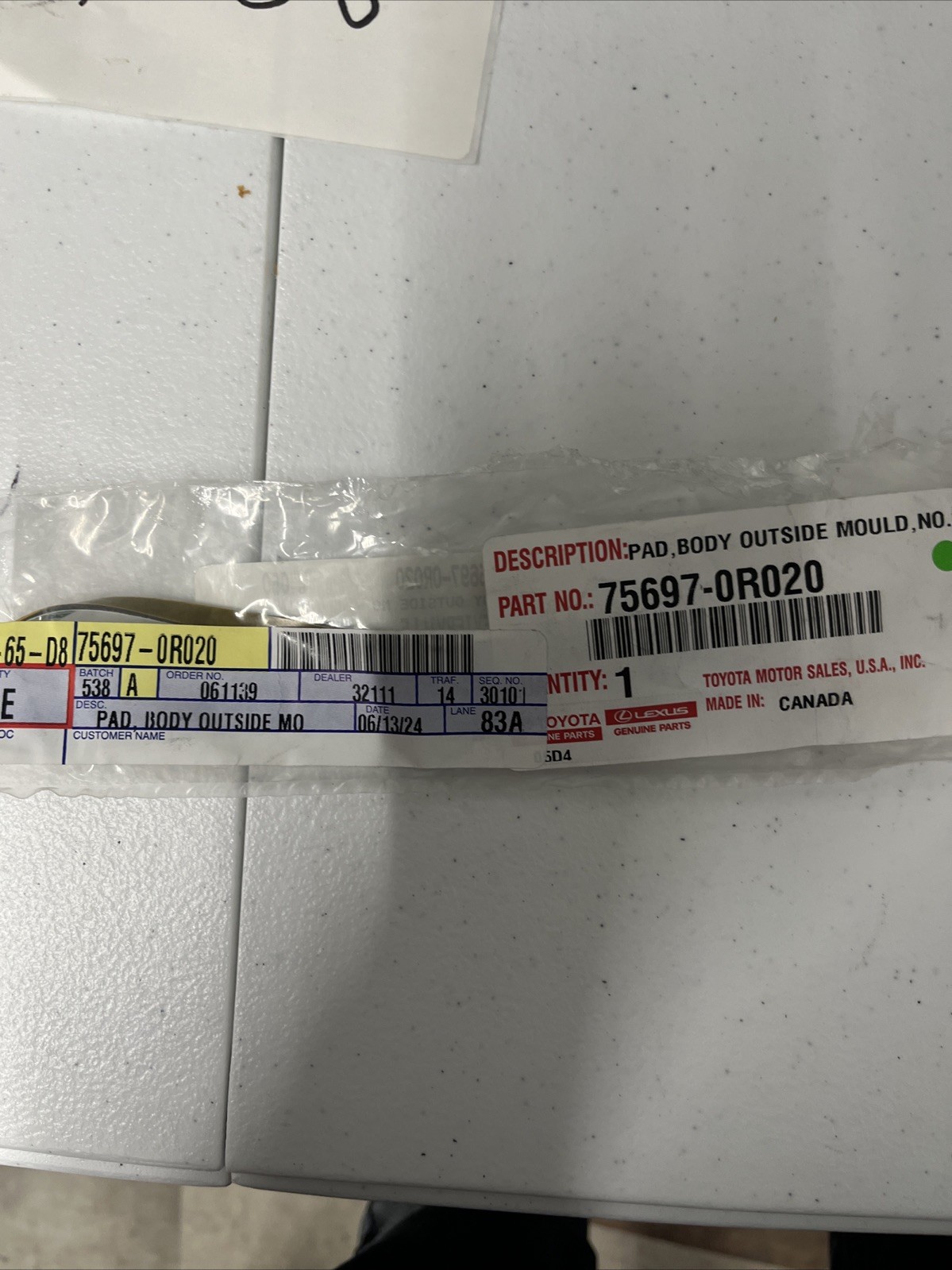 | Product Name | Genuine Toyota Pad Body Outside Mo 75696-0R020 |