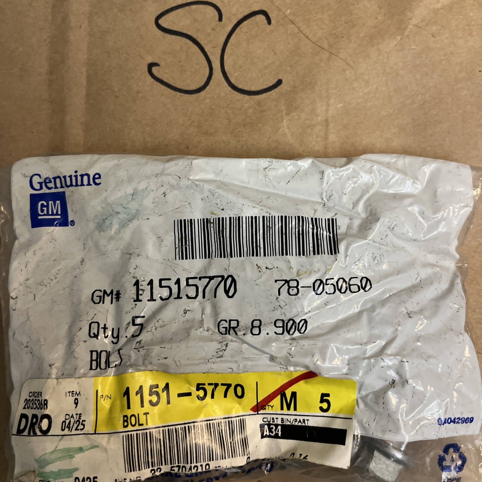 GM 11515770 Bolt, Engine Mount Bracket (Pack of 5) NOS OEM