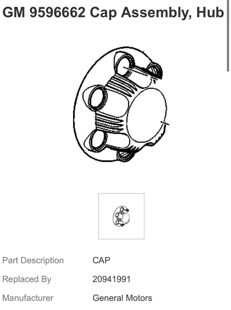 GM 9596662 Cap Assembly, Hub