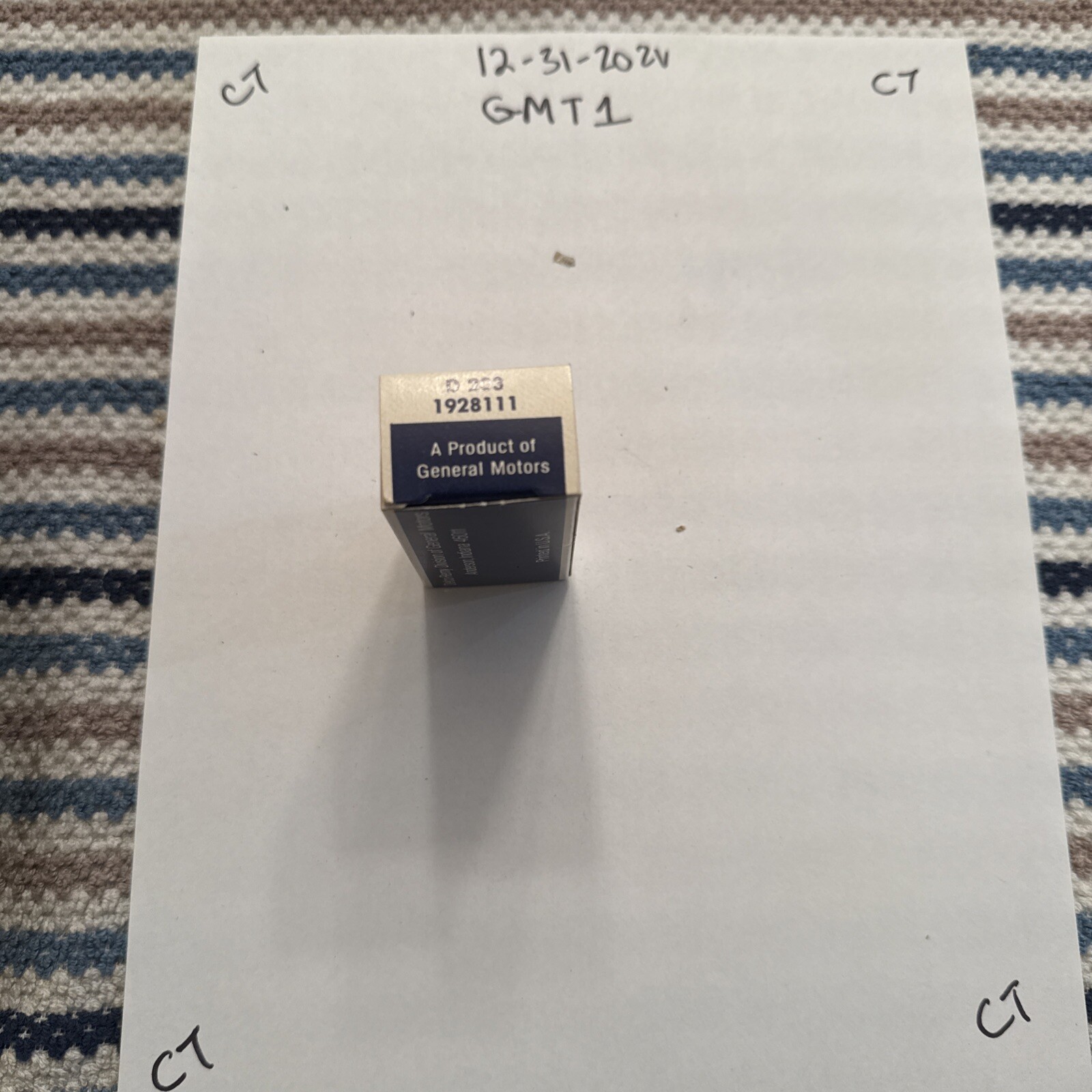 This is a NORS USA-made condenser with part number 1928111 or D-203, designed for use in a 6-cylinder Corvair model from 1960 to 1969. The brand of the condenser is ACDelco, and it was manufactured in the United States. This component is specifically for the ignition system of the mentioned Corvair models and is an additional distributor part. It ensures proper functioning of the ignition system by storing and releasing electrical energy to facilitate the spark needed for combustion in the engine.