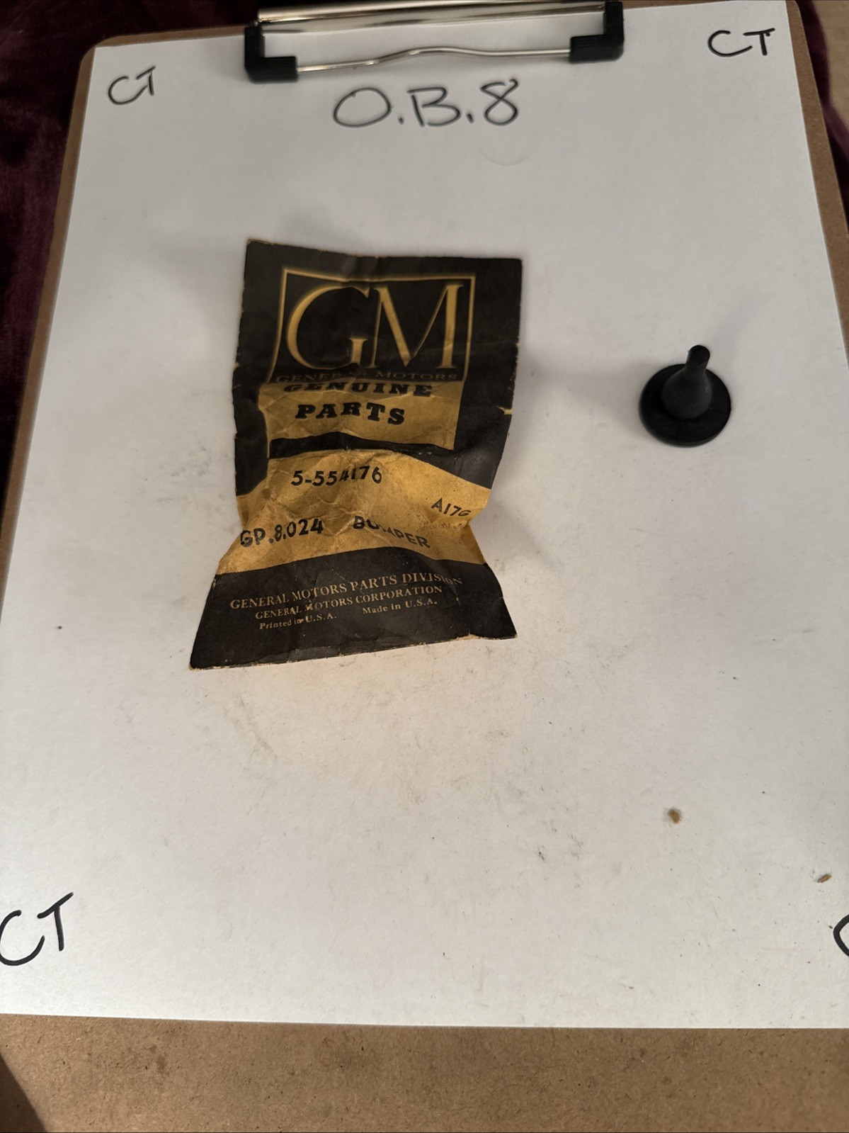This is a GM Hood Bumper with the part number 554176. It is a bumper component that can be used in car and truck parts and accessories. The brand is GM and the bumper type is a hood bumper.