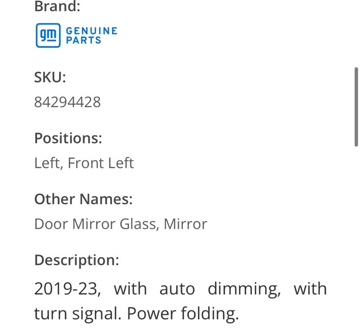 OEM GM Mirror Glass For 2019-2024 GM