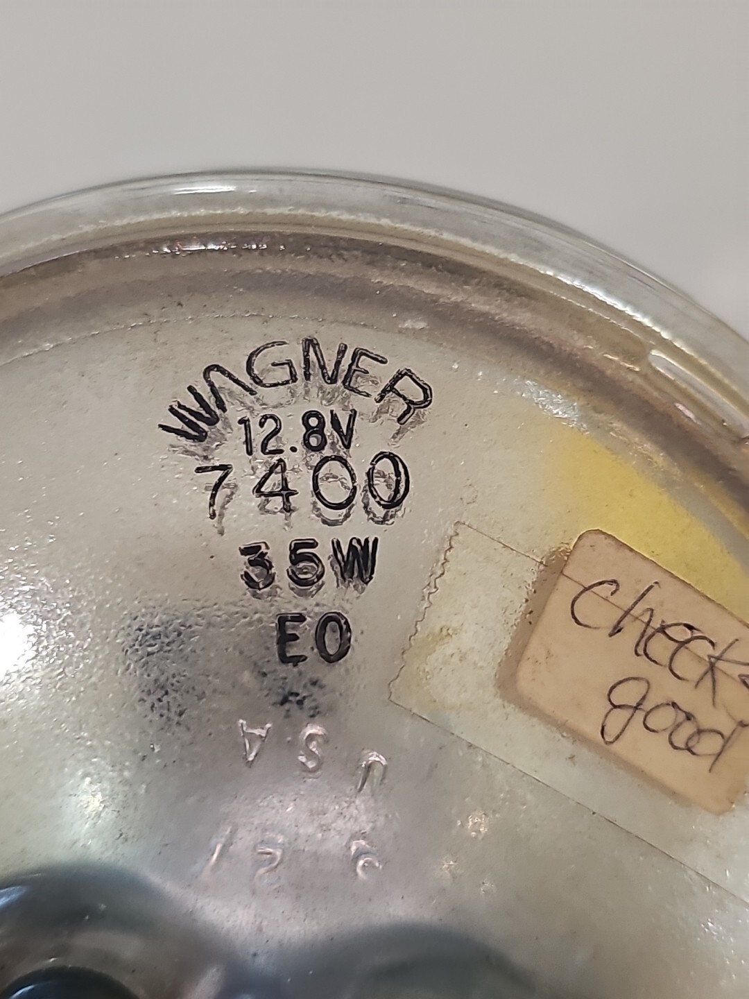 The Headlight Bulb by Wagner Lighting is a sealed lamp designed for direct replacement in car headlights. With a wattage of 35W and a voltage of 12.8V, this incandescent bulb is suitable for use in the left or right side of the front headlight assembly. The Wagner Lighting Peak 4801 bulb, part number 7400, features a clear lens and a chrome (crystal) housing, providing a factory-style look and ensuring optimal visibility on the road. This New Old Stock (NOS) bulb is a high-quality option for maintaining proper lighting performance in your vehicle.
