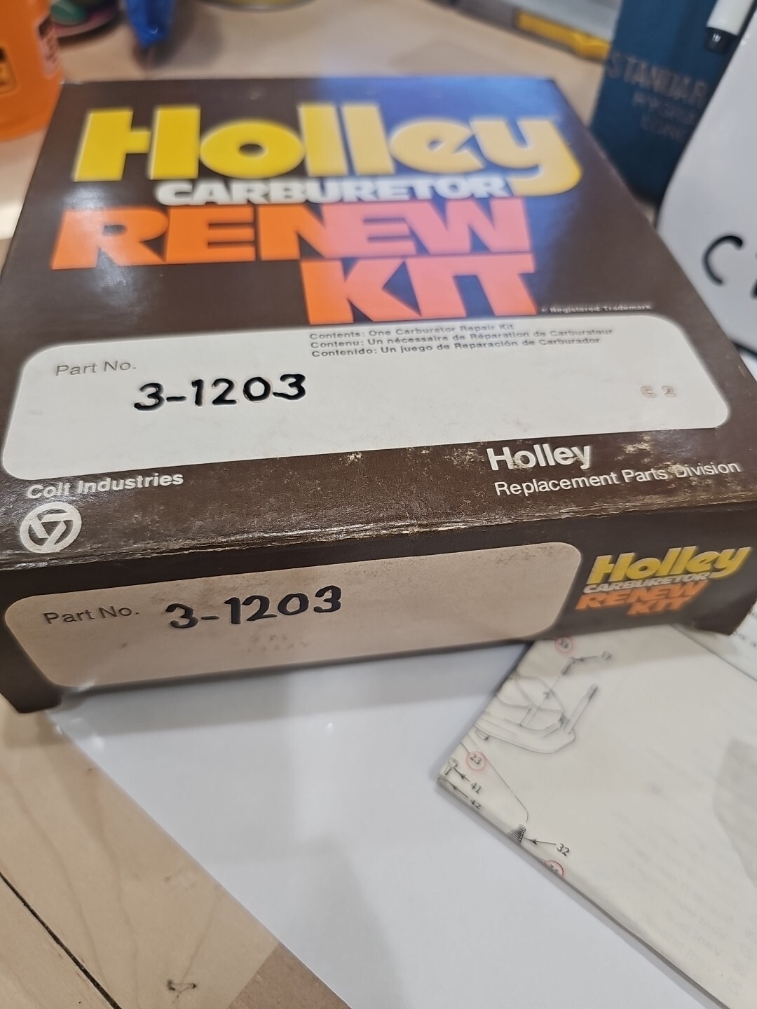 The product is a Holley Carburetor Renew Kit with manufacturer part number 3-1203, designed for Holley 6500/6510 carburetors. It is a vintage part made by Holley and is specifically used for maintaining and renewing the mentioned carburetor models.