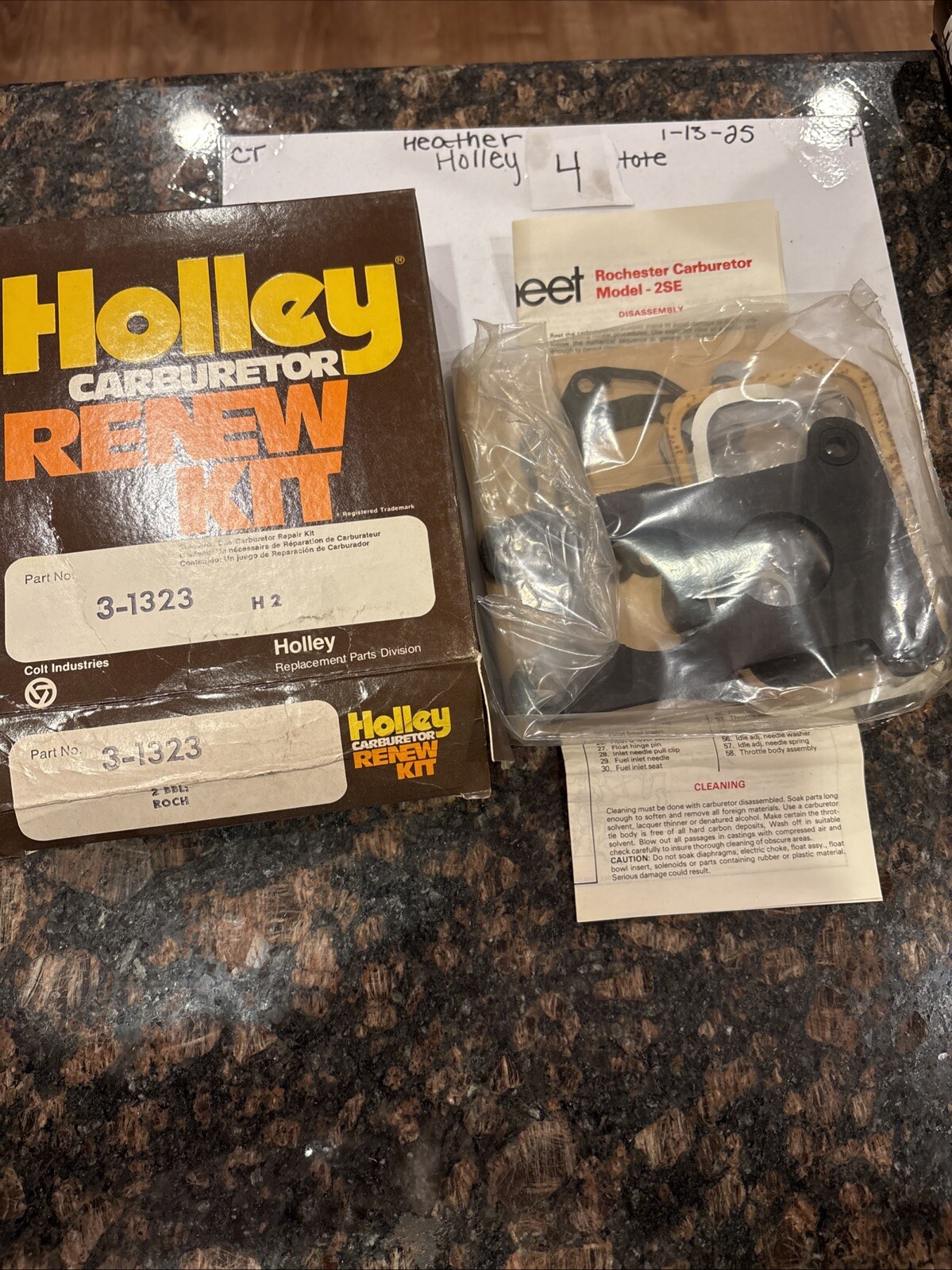 The Holley Renew Kit 3-1323 is a rebuilt kit designed for the Rochester Carburetor Model 2SE 2BBL. It is a direct replacement rebuild kit manufactured by Holley in the United States. This kit is specifically designed to provide all the necessary components for rebuilding and refreshing the carburetor, ensuring optimal performance and efficiency for your vehicle's air and fuel delivery system. It is a reliable choice for maintaining and restoring the functionality of your carburetor.