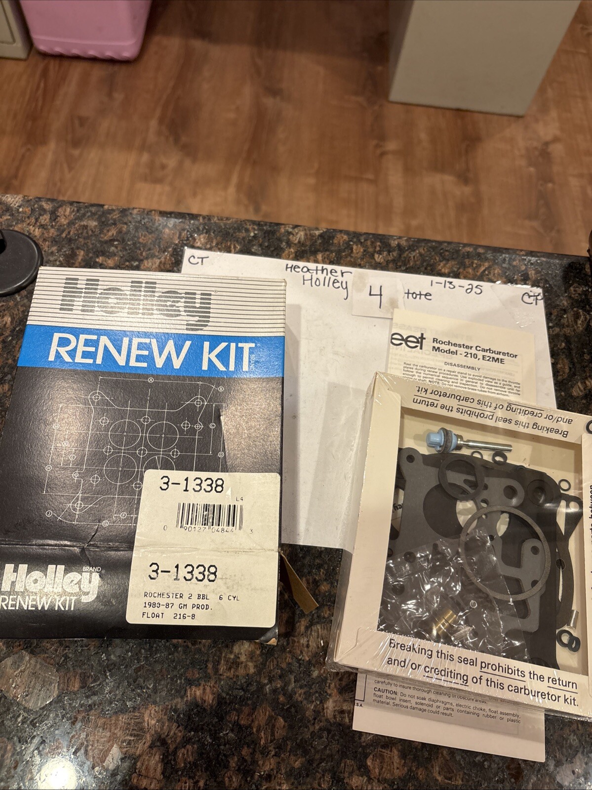 The product is a Holley Renew Kit 3-1338 designed for 2-barrel GM Rochester carburetors manufactured between 1983-1987. This rebuild kit includes components necessary to refresh the carburetor, ensuring optimal performance. The kit is suitable for use with the specific carburetor models 210 and E2ME. The product is manufactured in the United States by Holley, a reputable brand known for producing high-quality automotive parts and accessories.