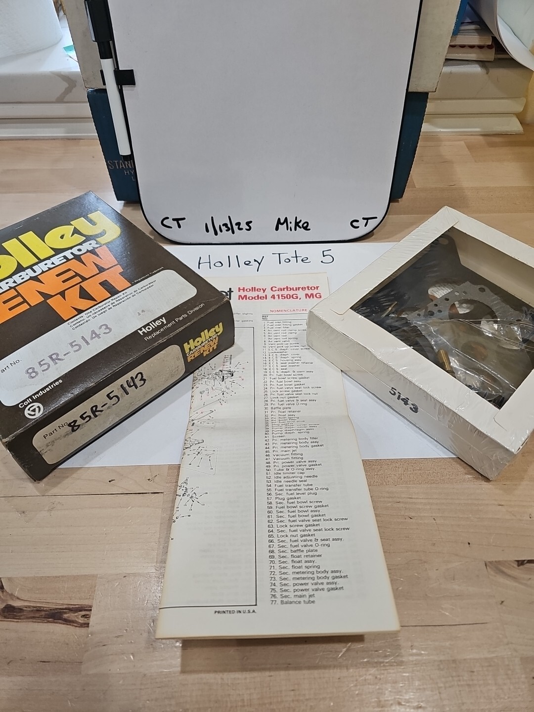 The product is a Holley Renew Kit 85R-5143 designed for Holley 4150G and MG carburetors. This rebuild kit is manufactured by Holley in the United States, making it a reliable option for restoring the performance of compatible carburetors. As a rebuild kit, it includes essential components for servicing and refreshing the carburetor to ensure optimal functionality and efficiency. Ideal for those looking to maintain or restore their Holley 4150G or MG carburetors, this kit provides a convenient solution for improving fuel delivery and overall engine performance.